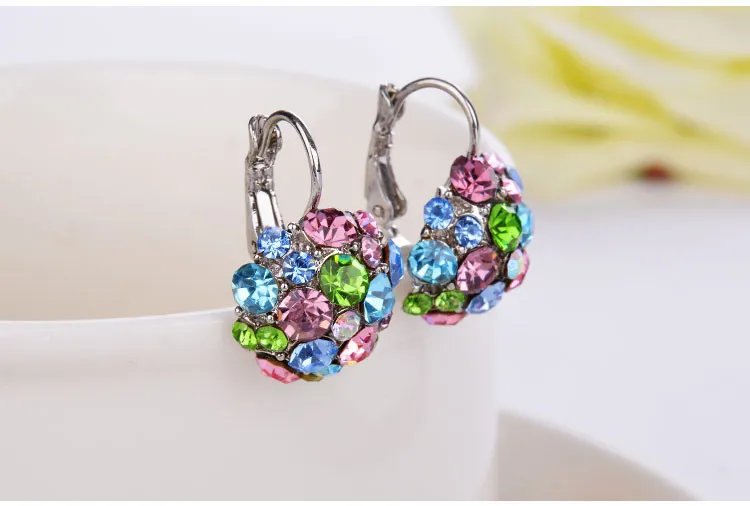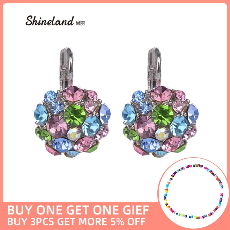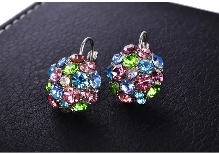 Популярные женские серьги-клипсы, модные аксессуары, посеребренные многоцветные хрустальные стразы, массивные серьги-клипсы, ювелирные изделия