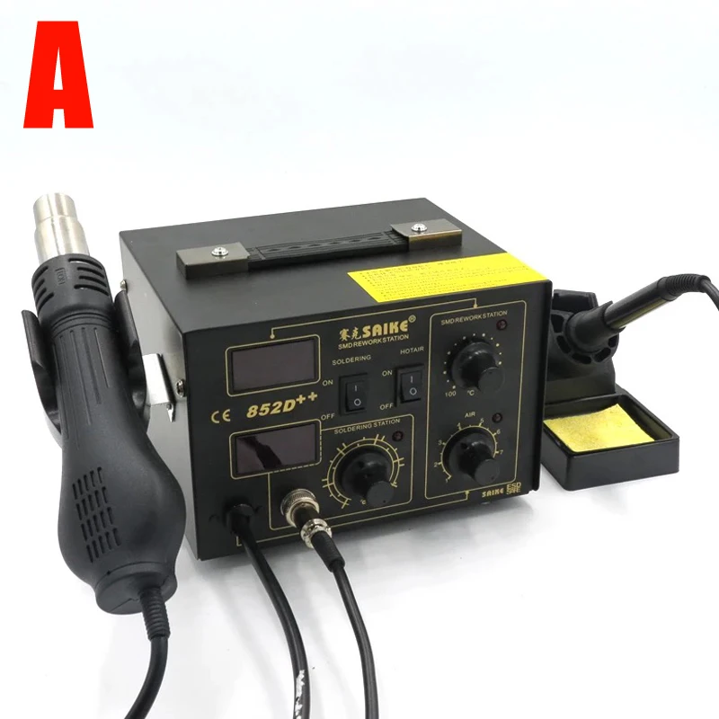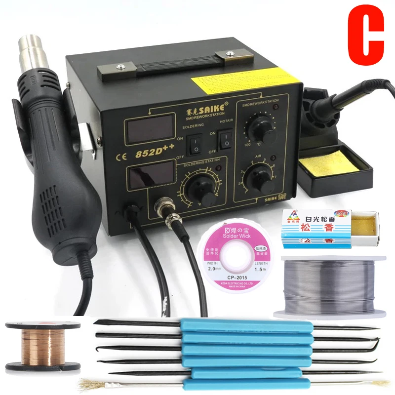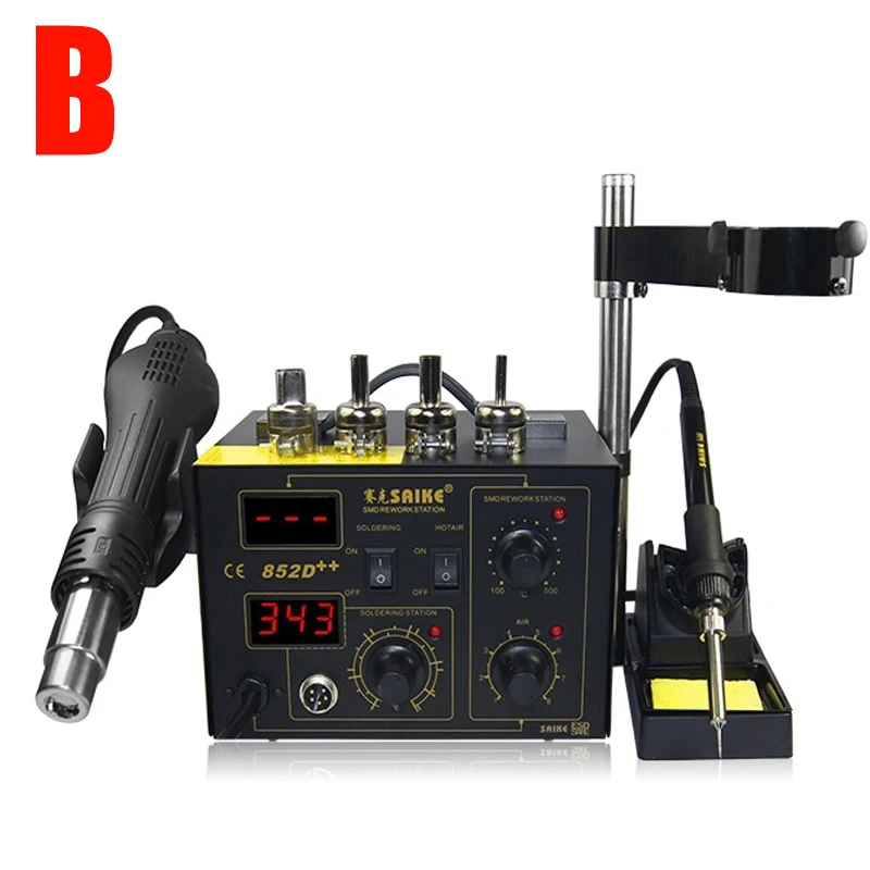 Паяльная станция Saike 852D ++, паяльная станция 2 в 1 220 В110 В с корпусом BGA, со стойкой для пневматического пистолета и многими подарками