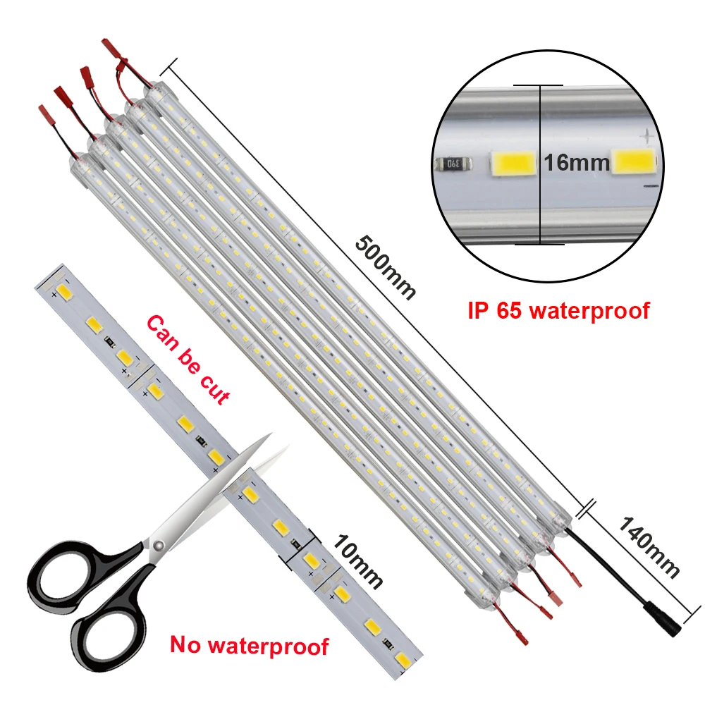 Под Кабинет светильник светодиодный Алюминий профиль для Светодиодный полоски DC12V 36 светодиодный s 5630/5730 прозрачный/молочное покрытие светодиодный жесткий стержень светильник