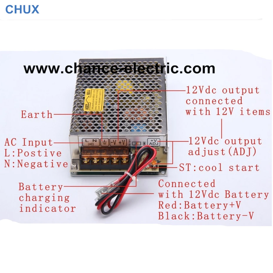 Автоматически переключается на питание после отключения питания. Питание аккумулятора, когда напряжение упадет до 10 в, автоматически отключает выход, чтобы предотвратить перегрузку, может эффективно защитить батарею.