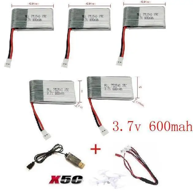 X5c x5 x5sc x5sw 2,4G RC Квадрокоптер 3,7 v 600mah литий-полимерный аккумулятор с USB-кабелем