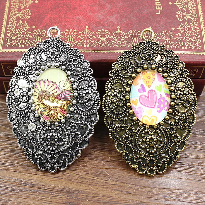 Кабошоны под старину, сереброзолото, 18x25 мм, 3 шт.лот K02601