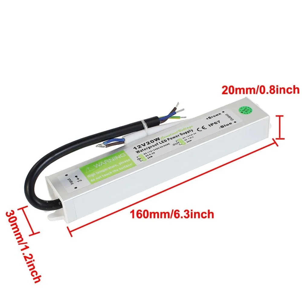Описание:Водонепроницаемый IP67 серебристый алюминиевый светодиодный источник питания драйвера.Светодиодный драйвер с постоянным током для любого цвета.Поставляется с соединительными кабелями, легко устанавливается.Подходит для других электронных продуктов, которые используют источник питания постоянного тока 12 В.Совместим с светодиодный светильник (3528, 5050, 5630 и так далее), который нужен DC 12V.Технические характеристикиНазвание продукта: водонепроницаемый светодиодный драйверМатериал: алюминий, пластикВход: AC 110-240 В пер. тока, 50/60 Гц, 0.2A, 25 ВтВыход: DC 12V +/-0,5 V, 1.67A, 20WМощность: 12 В 20 ВтВодонепроницаемый ранг: IP67Вес нетто: 175 гОбщий размер (приблизительно): 160x30x20 мм/6,3x1,2x0,8 дюймов (Д * Ш * В).