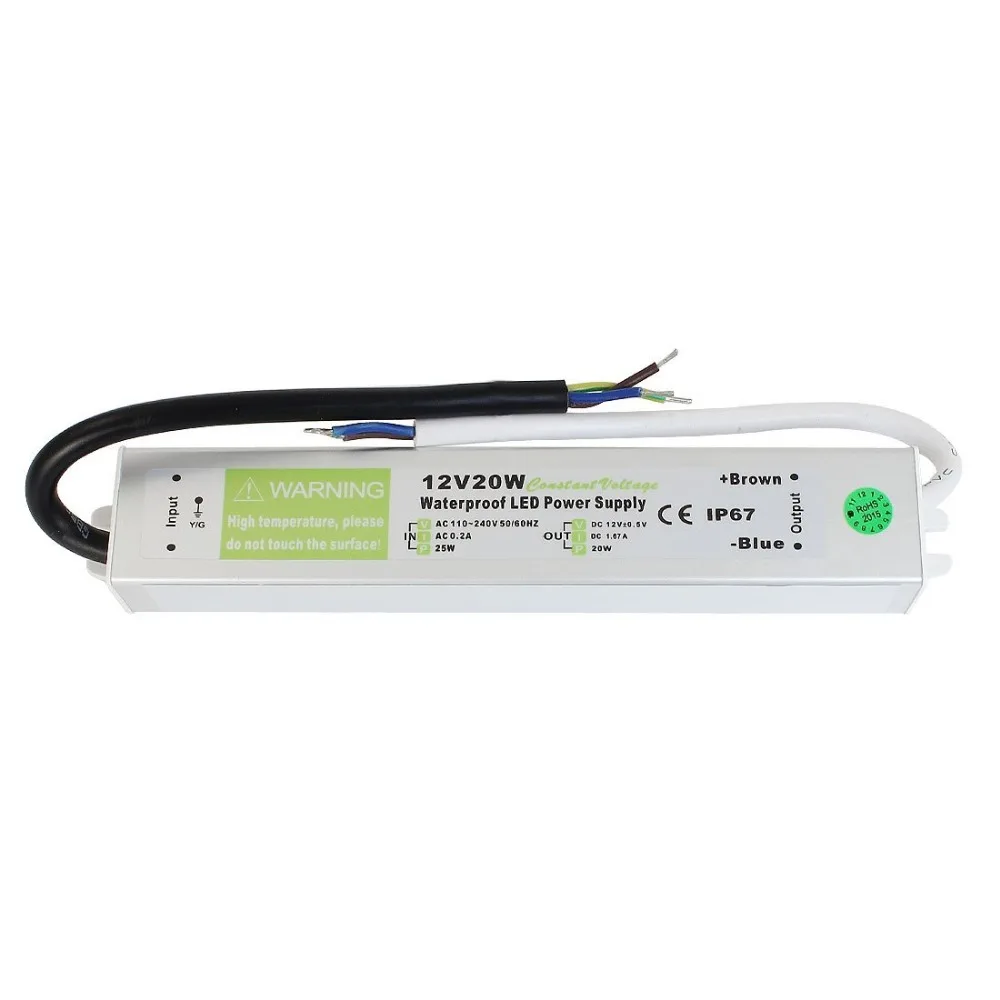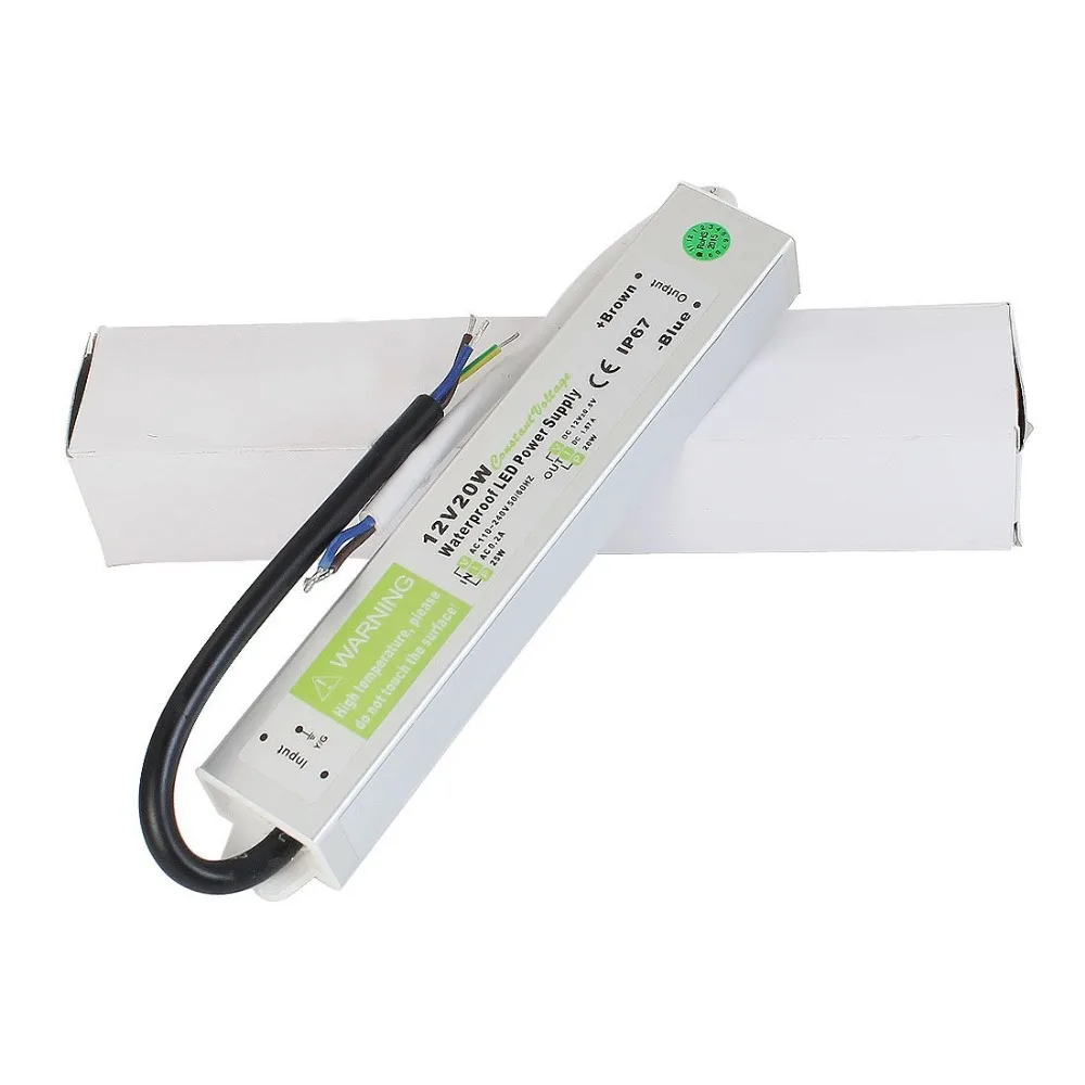 Водонепроницаемый ip67 электронный светодиодный драйвер постоянного тока, 12 В, 20 Вт, уличный источник питания, светодиодные ленты, трансформатор освещения, 90-250 В переменного тока