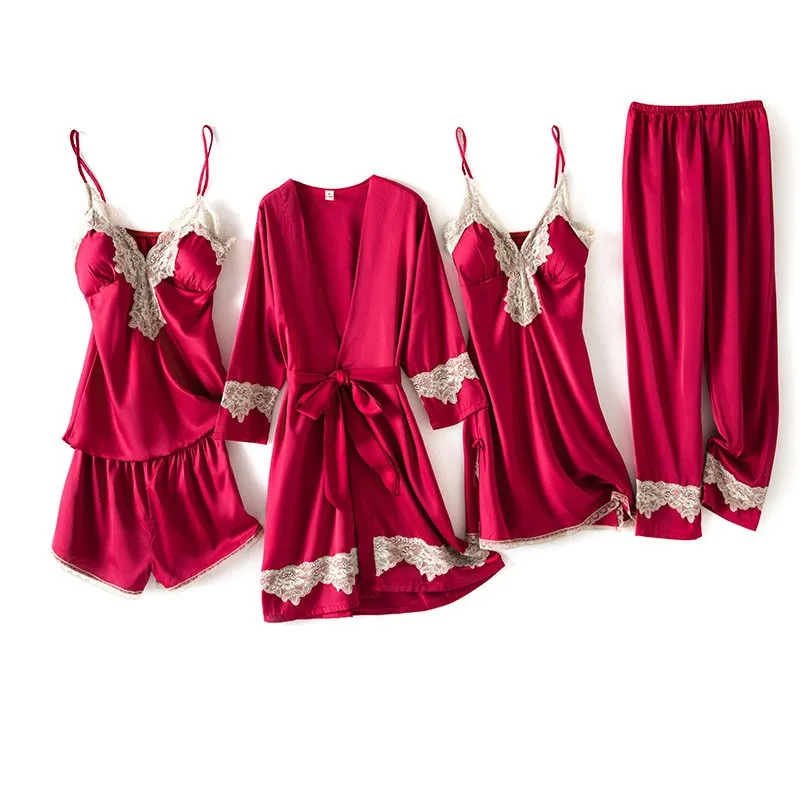 Ночная рубашка женская, цвет бордовый, Шелковый, кружевной
