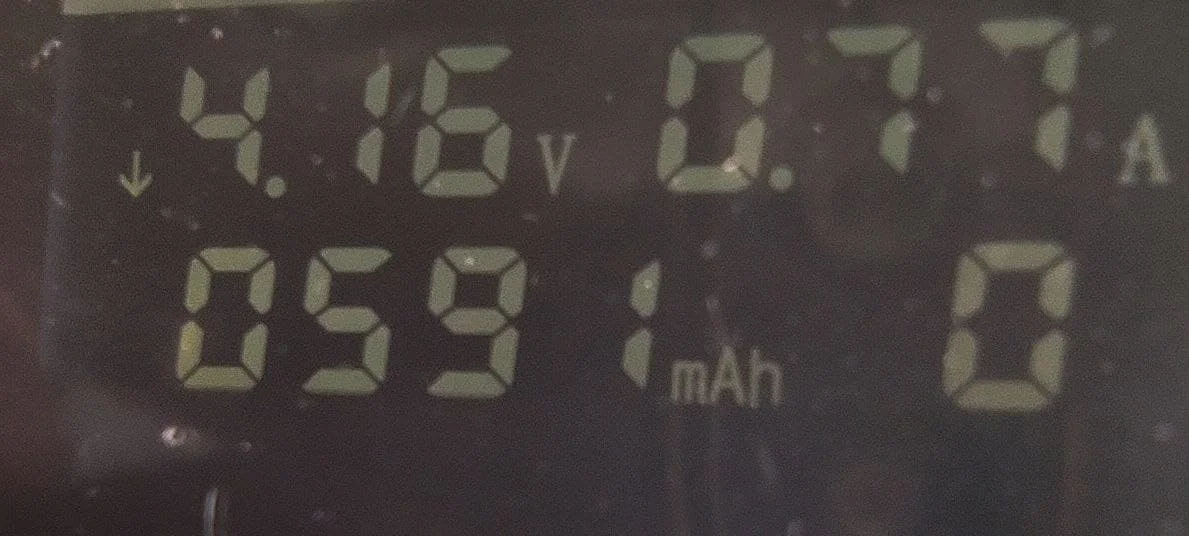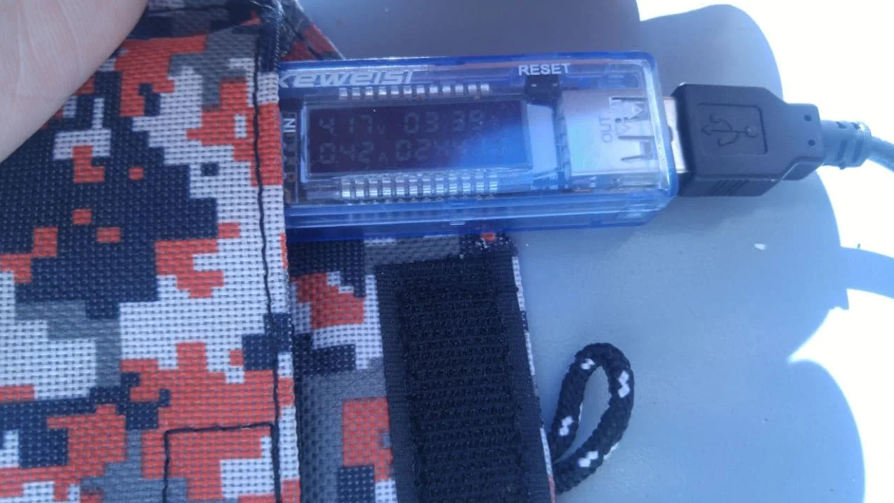 В солнечный день при непосредственном освещении, когда я подключил свой внешний аккумулятор к панели солнечных батарей напряжение снизилось до 4,17 в (!) И amperage был 0.42a, поэтому при непосредственном освещении он занял 3 ч 39 минут, чтобы зарядить только до 2441 мА · ч. Поэтому я не рекомендую сосать солнечную панель. Откроет спор.