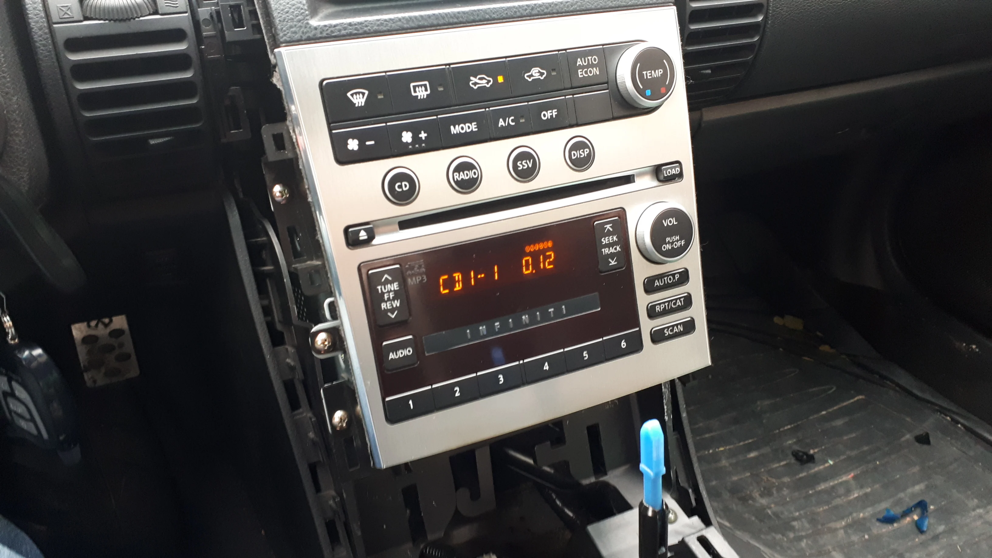 Модуль работает нормально, он определяется в стандартной системе как дополнительный cd-заменитель, обычный также работает. Управление рулем также работает с подключенным телефоном через bluetooth Ifniniti G35(2005) Стерео схема проводки Infiniti G35 Радио Постоянный 12 В + провод: желтый Радио переключаемое зажигание 12В + провод: светло-зеленый