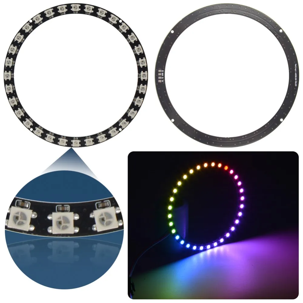 WS2812B кольцо 1 8 12 16 24 32 37 93-битная светодиодсветодиодный s 5050RGB SK6812 адресная круглая светодиодная пиксельсветильник лампа со встроенными драйверами