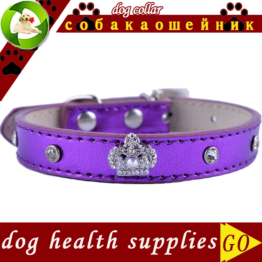ошейник для собак Горный хрусталь пряжки собачий ошейник кожаный ошейник для Товары для собак Стразы Корона очарование животное Цепочки и ожерелья Товары для собак