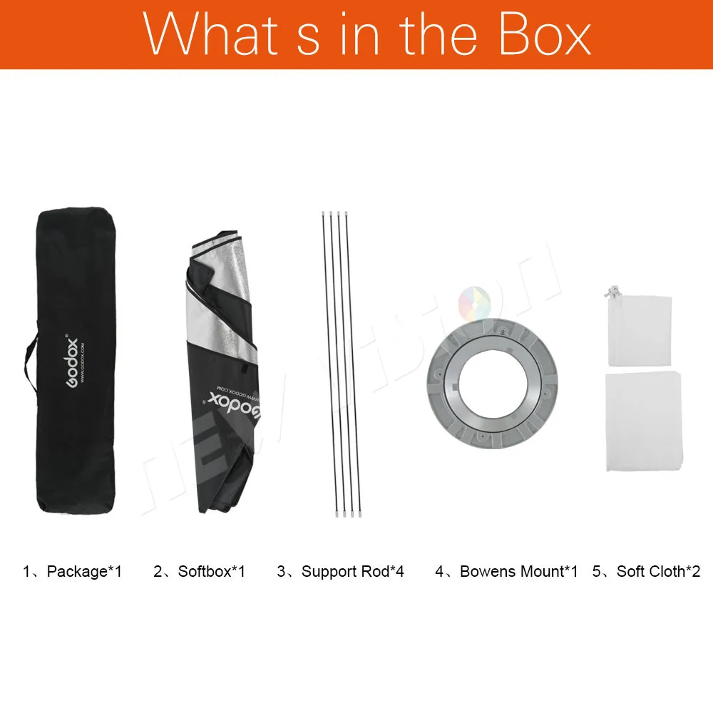 Портативный Прямоугольный софтбокс Godox 60X60 см24 "X24" для студийного стробоскопа, диффузор с креплением Bowens для студийной вспышки DE300 DE400