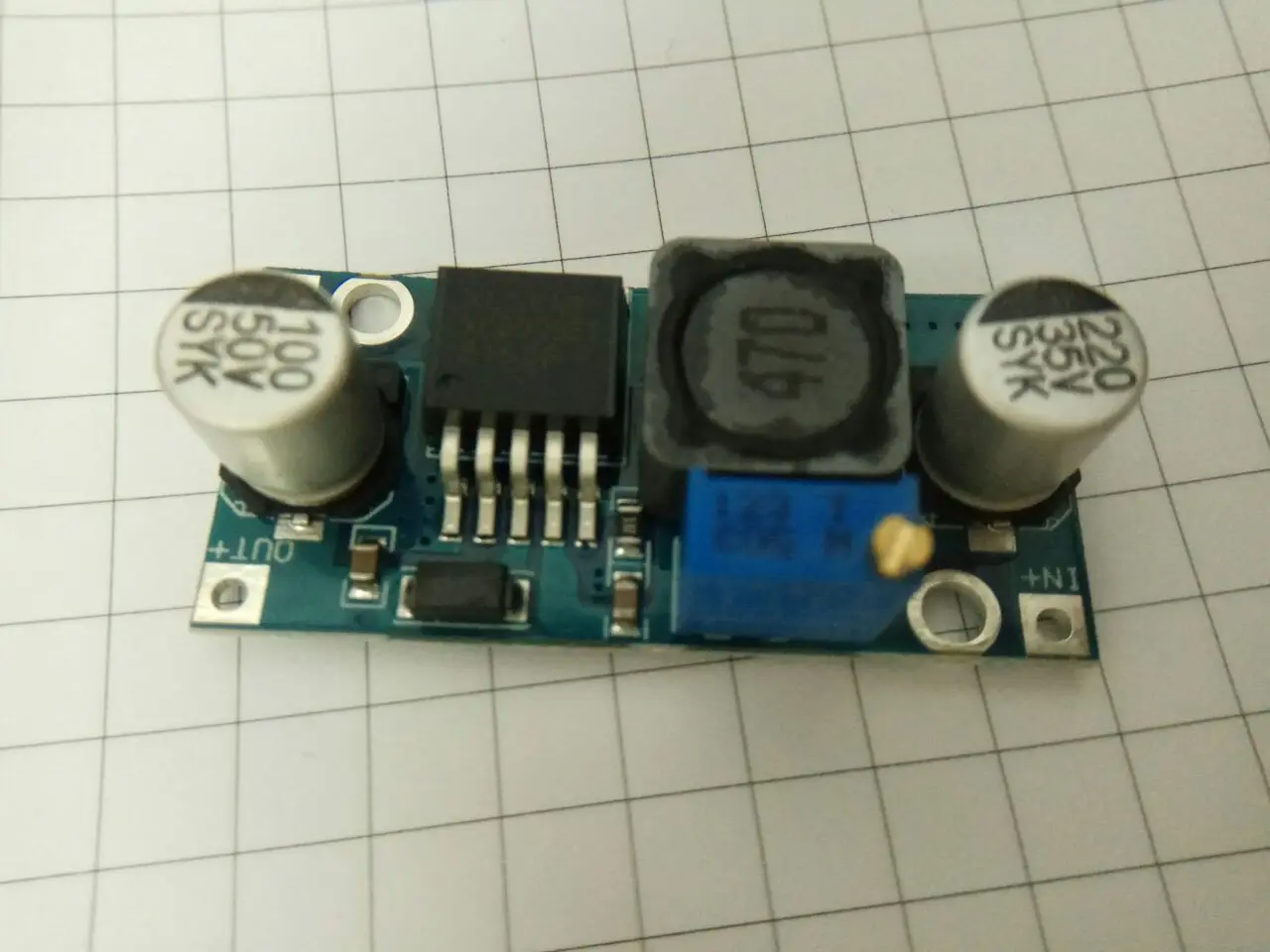 Модуль пришёл через месяц, работает, но уже при 0,5А нагрузки микросхема и диод греются очень сильно. Имеет следы флюса.