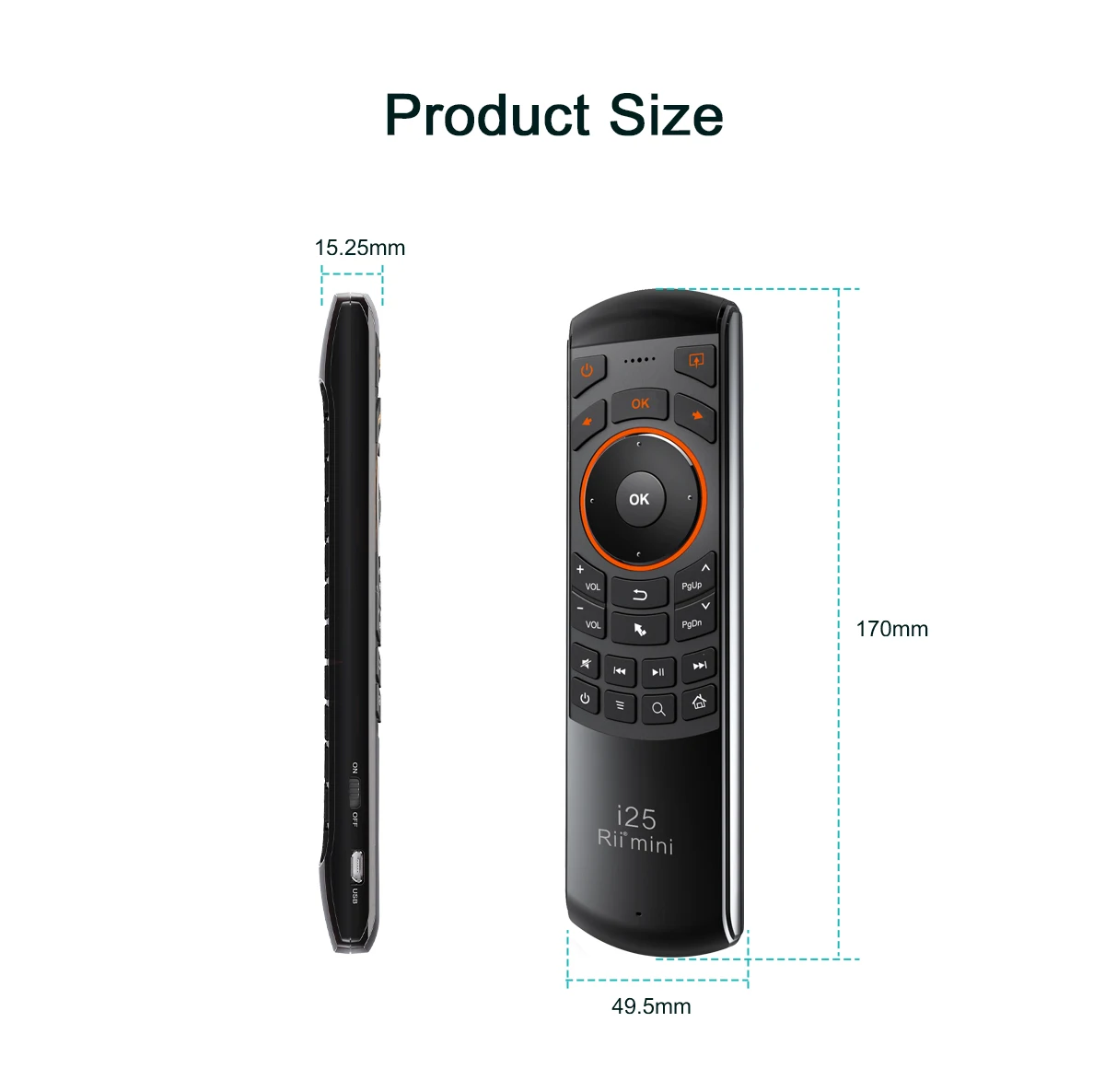 Беспроводная клавиатура Rii Mini i25 2,4G, русская, Арабская раскладка, Воздушная мышь с ИК-пультом дистанционного управления, обучение для Android TV BOX PC