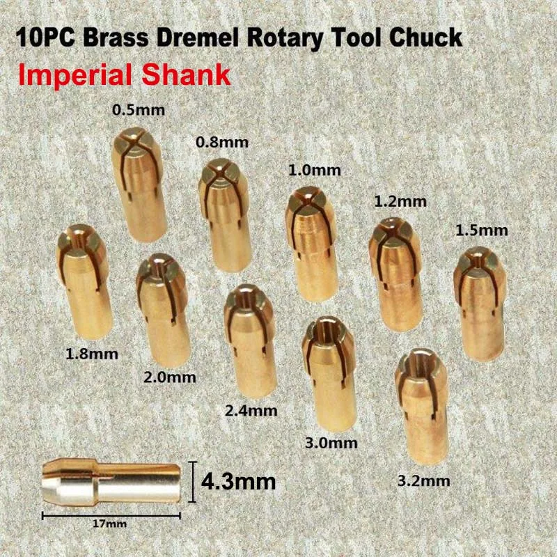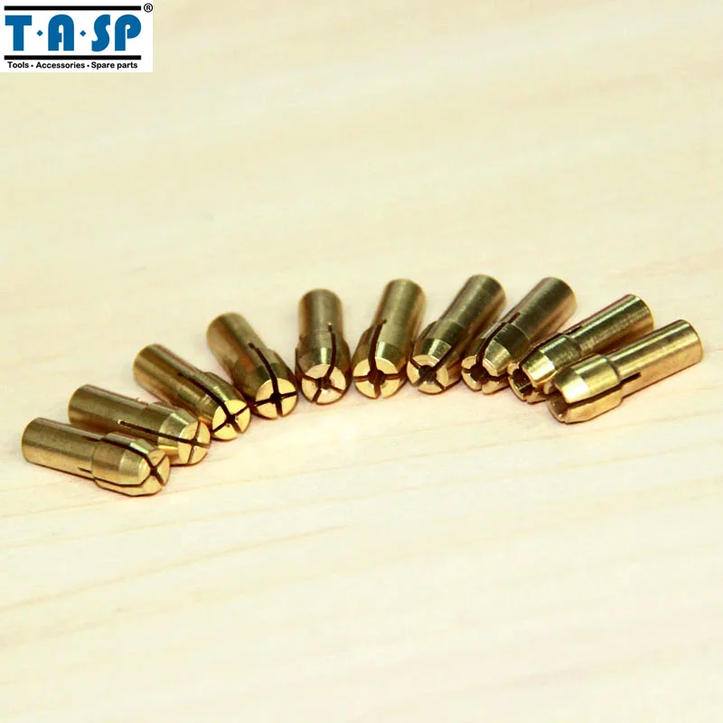 TASP 10 шт., латунная вращающаяся инструментальная цанга, набор мини-патронов для сверл 0,50,81,01,21,51,82,02,43,03,2 мм, аксессуары для электроинструментов