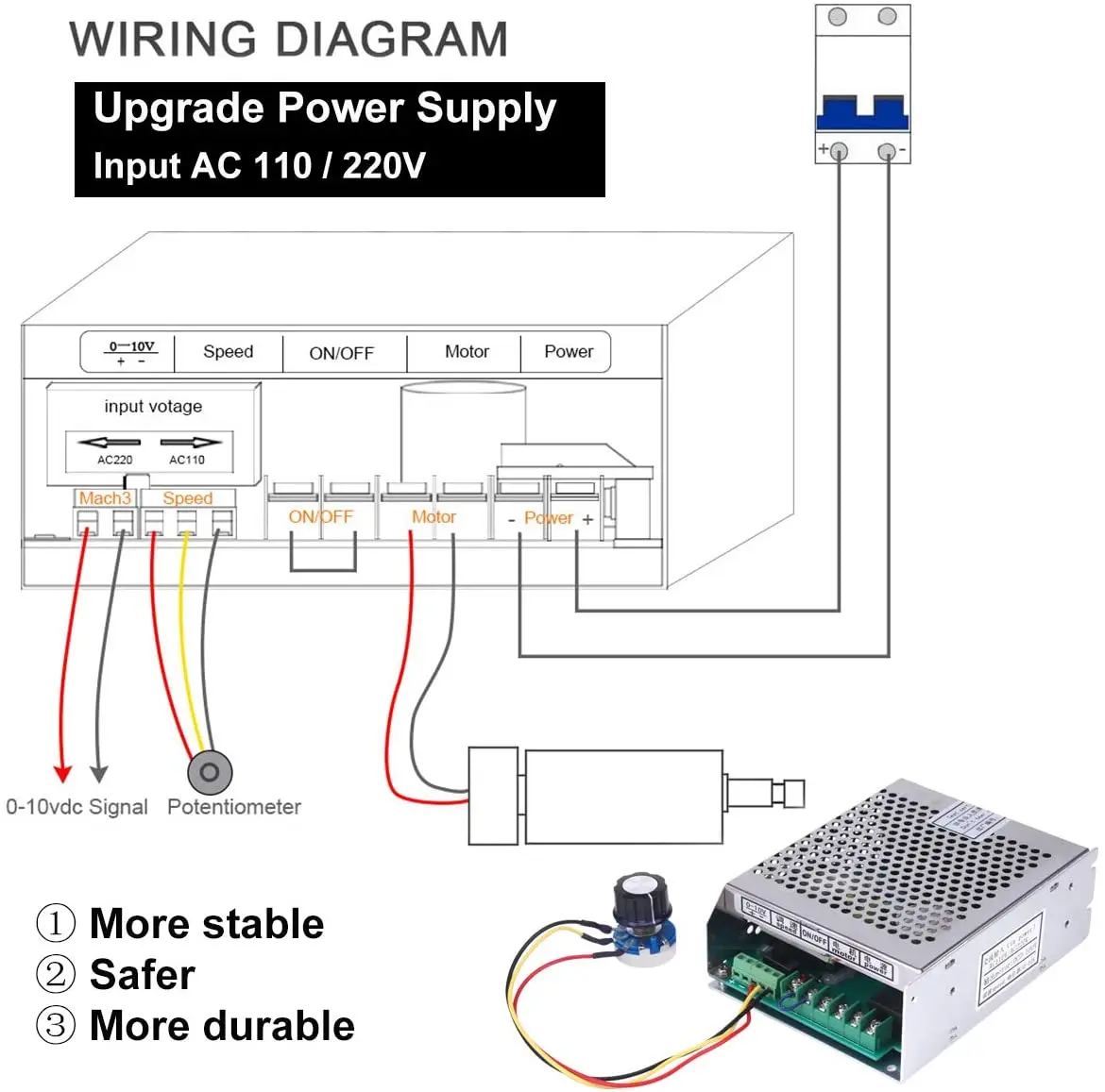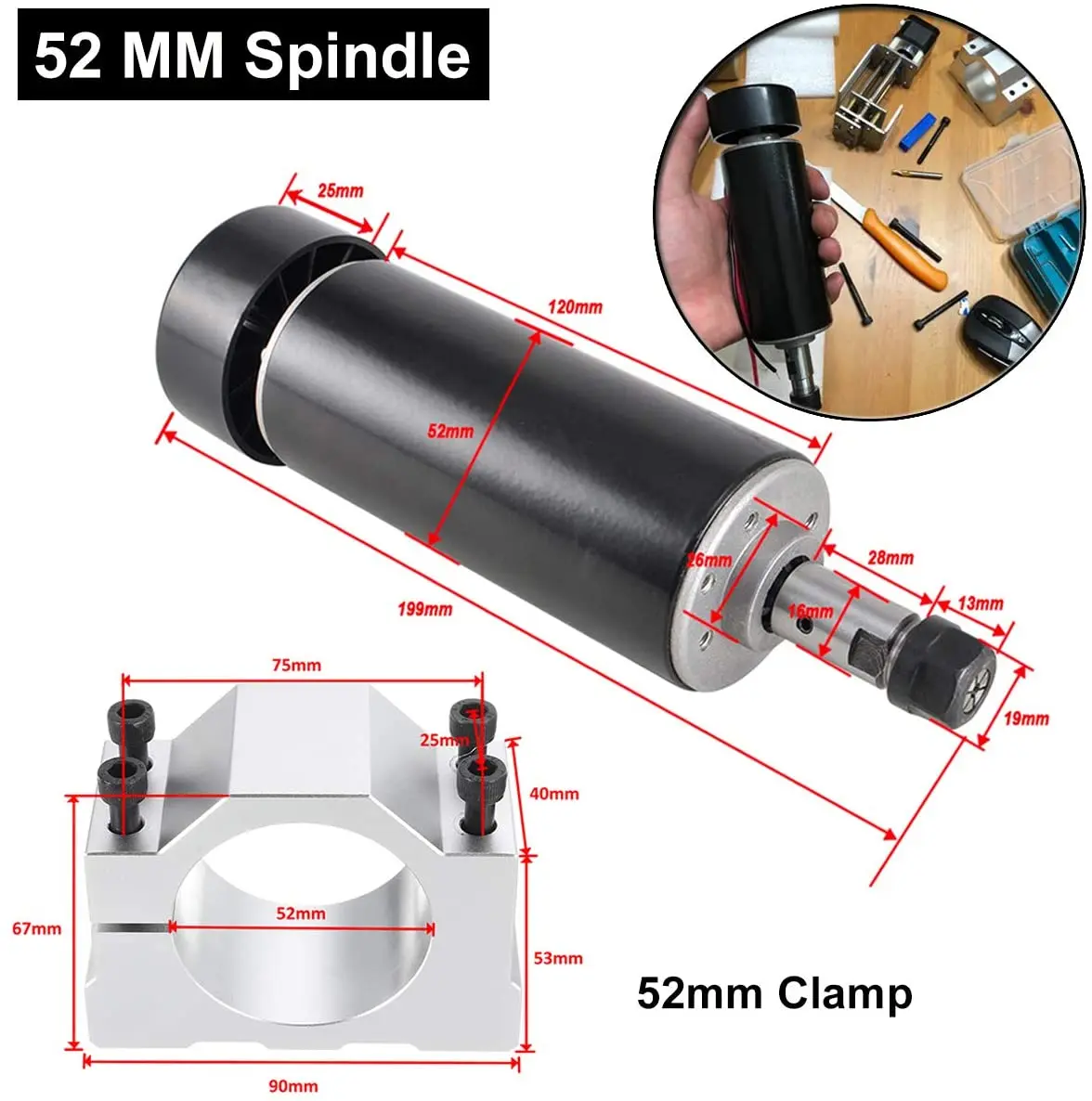 Электродвигатель шпинделя с ЧПУ, 500 Вт, 220 В, кВт, 52 мм, зажимы, ER11, цанга, патрон для гравировки печатных плат
