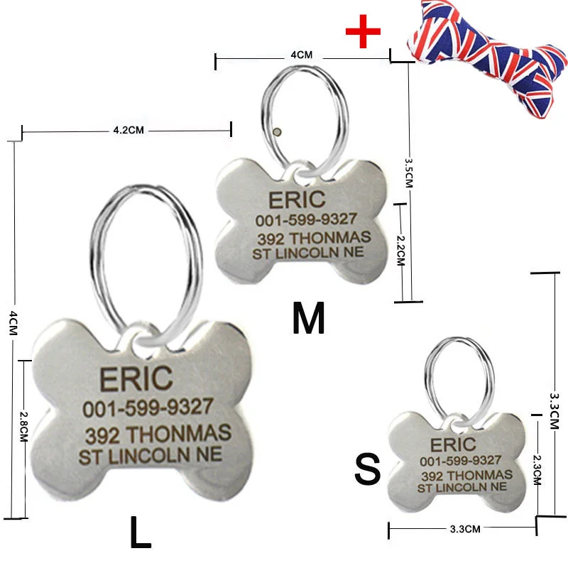 Бесплатная гравировка текста на лицевой и задней сторонах из нержавеющей стали для домашних питомцев, собака, индивидуальный QR-адрес, телефон, бесплатные игрушки