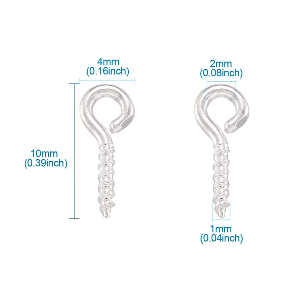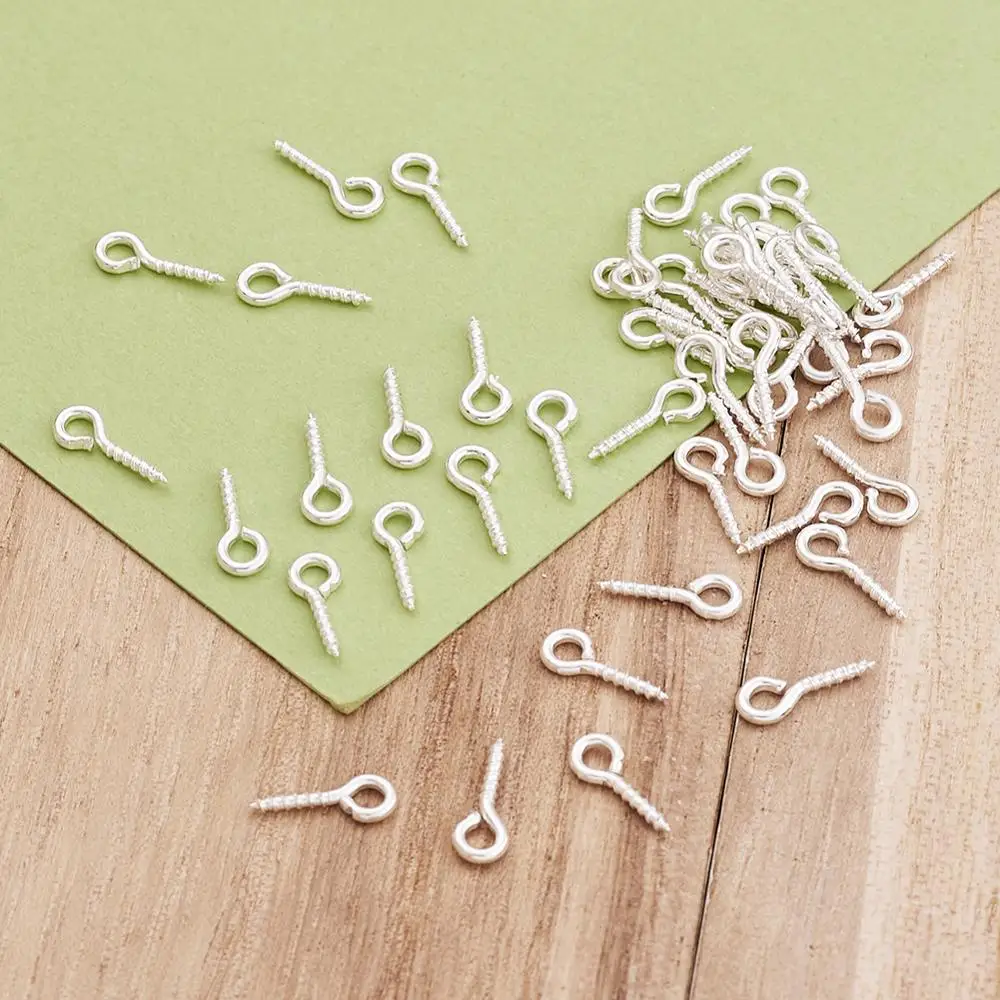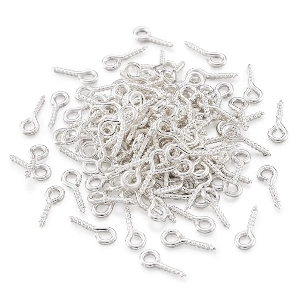 200 шт серебряных железных винтов для фиксации глаз, крепежные крюки с резьбой, металлические застежки, крючки для полупросверленных бусин, подвески, шарм, изготовление украшений
