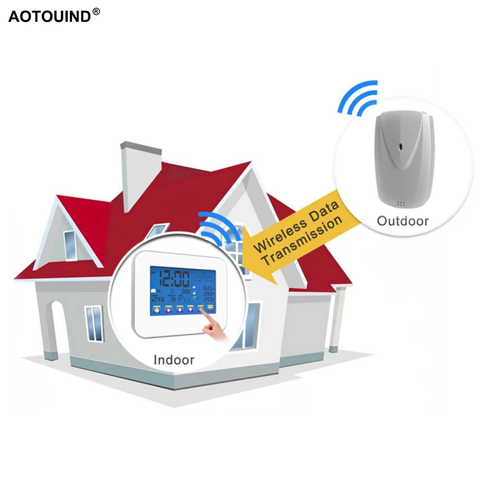 AOTOUIND сенсорный экран Профессиональная беспроводная погодная станция с крытым наружным термометром гигрометр # T01 + адаптер