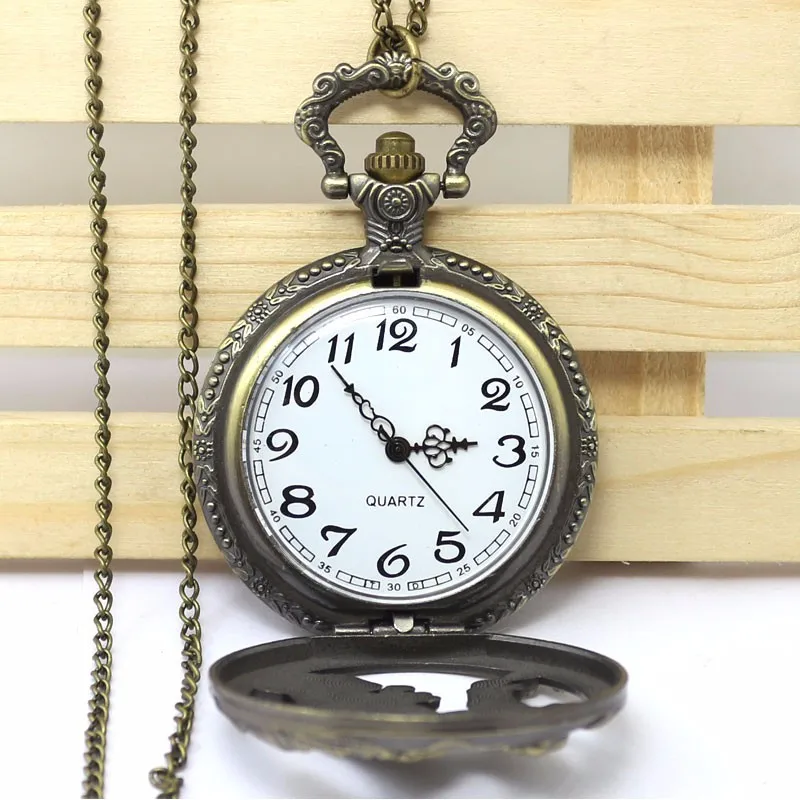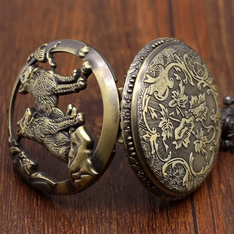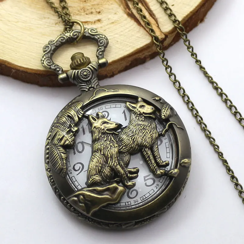 Античные бронзовые крутые часы Hound Wolf Dog дизайн полые кварцевые карманные часы ожерелье кулон часы для женщин и мужчин подарки Relogio De Bolso