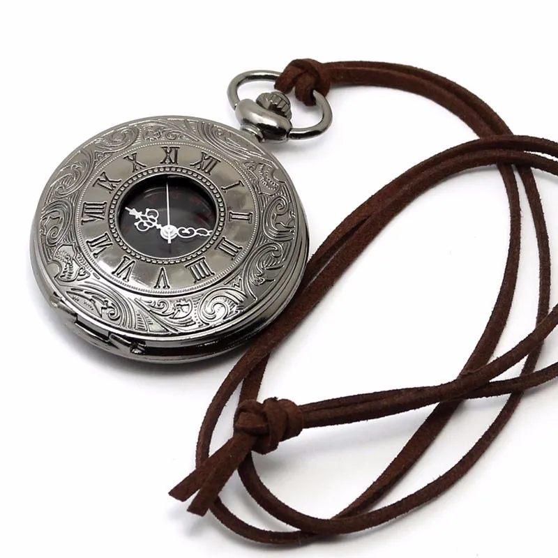 Новинка 2017, винтажные черные карманные часы, кварцевые часы, набор цепочек, ожерелье, подвеска, подарки, коробка, сумка, мужские и женские подарки, Relogio De Bolso