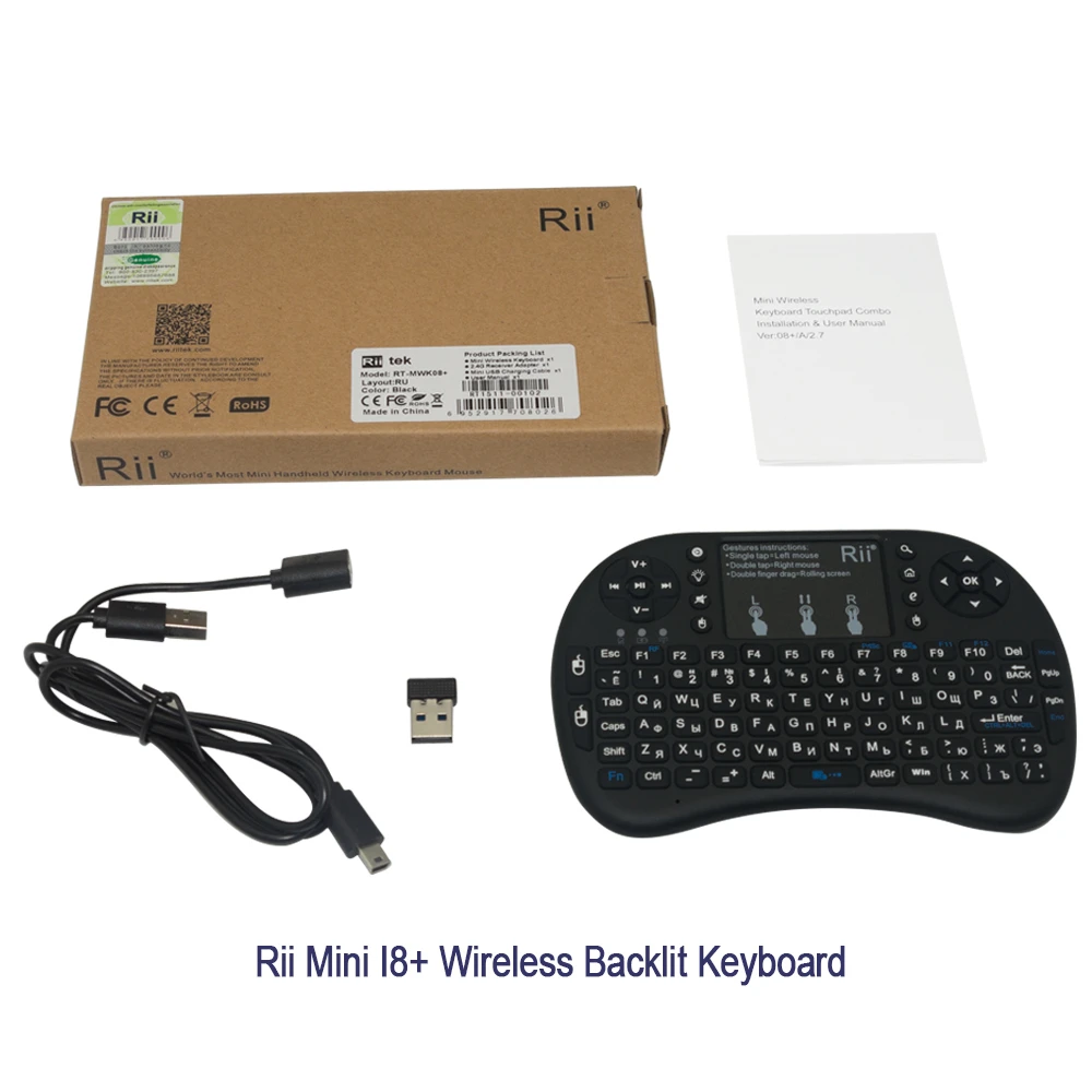 Rii Mini i8 + 2,4G русская беспроводная клавиатура с подсветкой с тачпадом для Android Mini PC, Smart TV Box