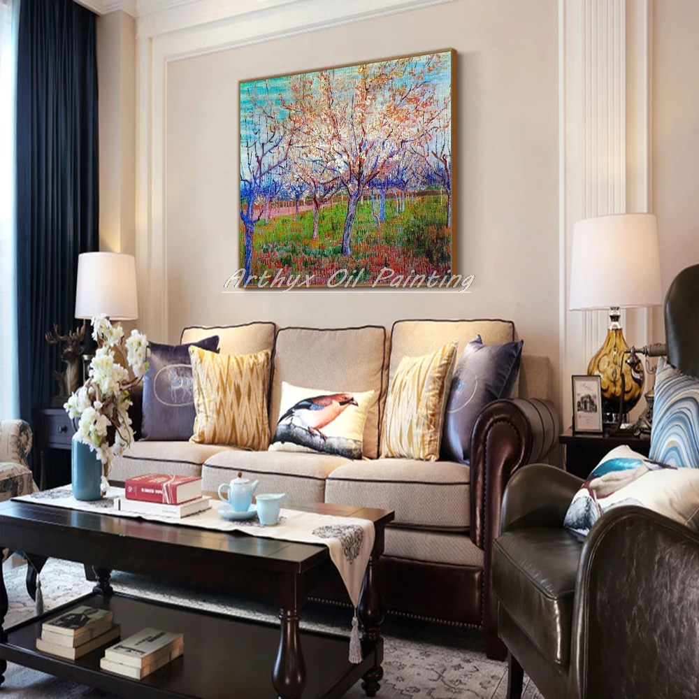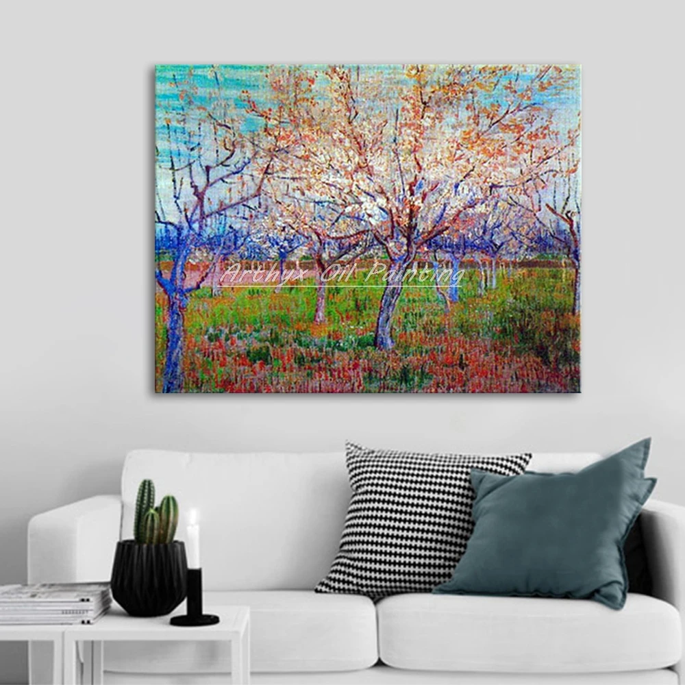 Фруктовый сад с цветущими абрикосовыми деревьями, воспроизведение вручную, нинцент Ван Гога Знаменитые Картины маслом на холсте для украшения дома