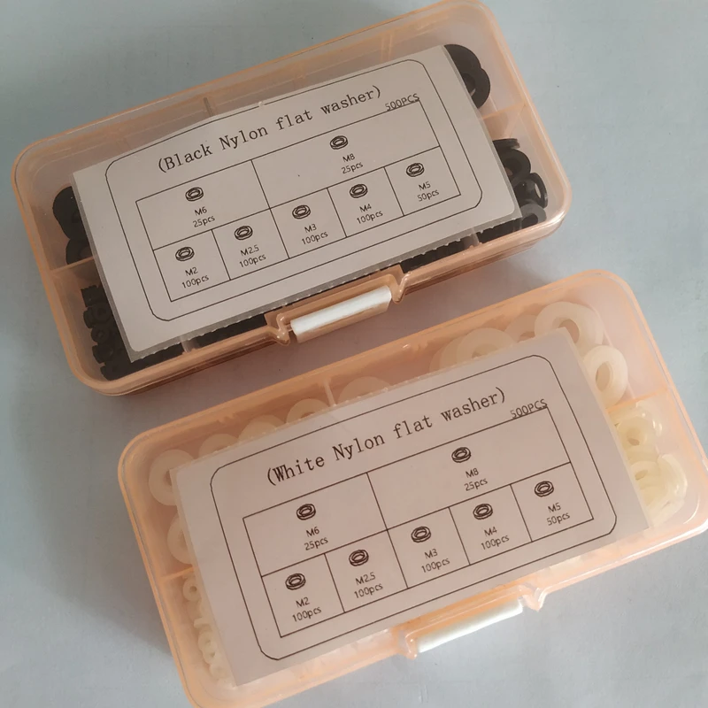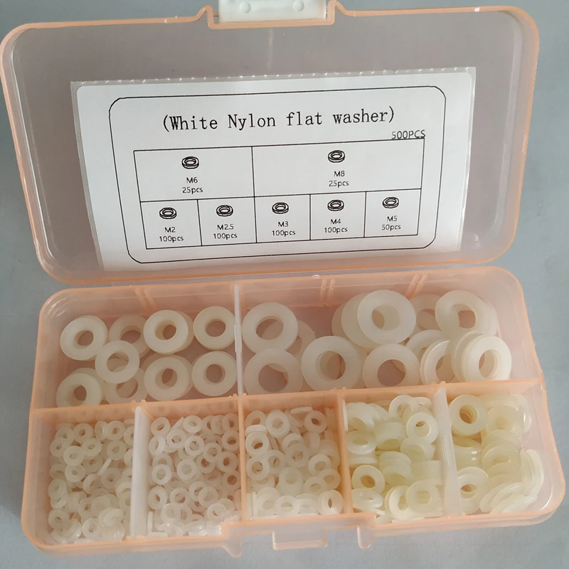 Набор нейлоновых шайб 500 шт.кор., M2 M2.5 M3 M4 M5 M6 M8, плоская шайба, простая прокладка, наборы кольцевых шайб, смешанный комплект