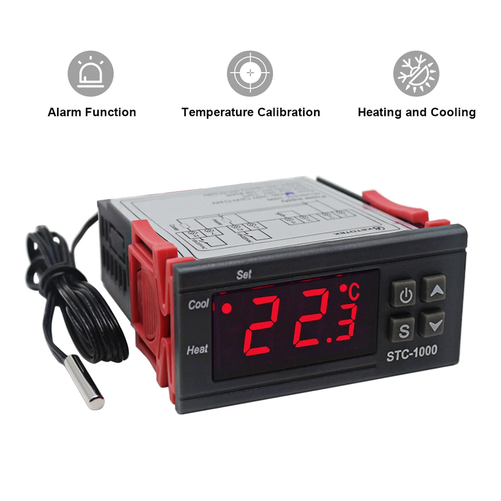 Контроллер температуры, цифровой ЖК-дисплей, STC-1000, 1 м, датчик NTC, термостат, регулятор, нагреватель, кулер, два релейных выхода