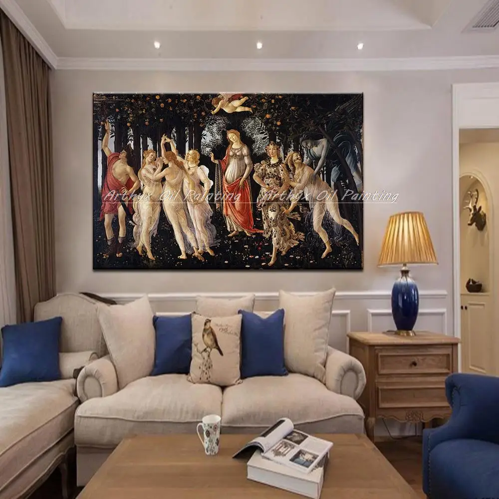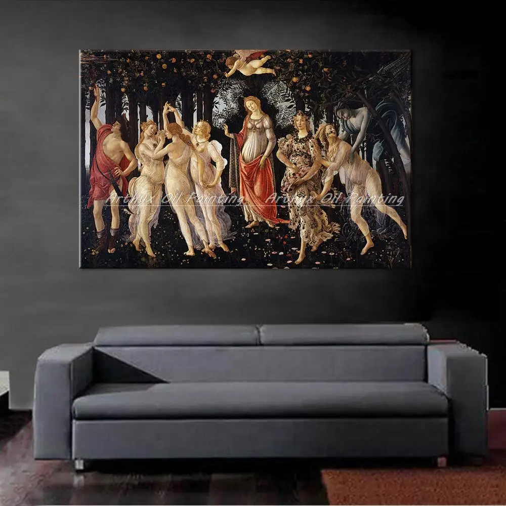 Картина маслом на холсте ручной работы, копия полноразмерных картин Botticelli's Primavera для гостиной, домашний декор