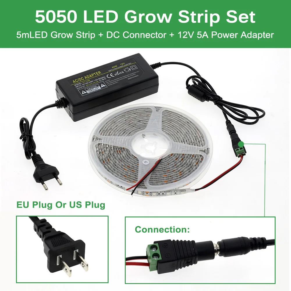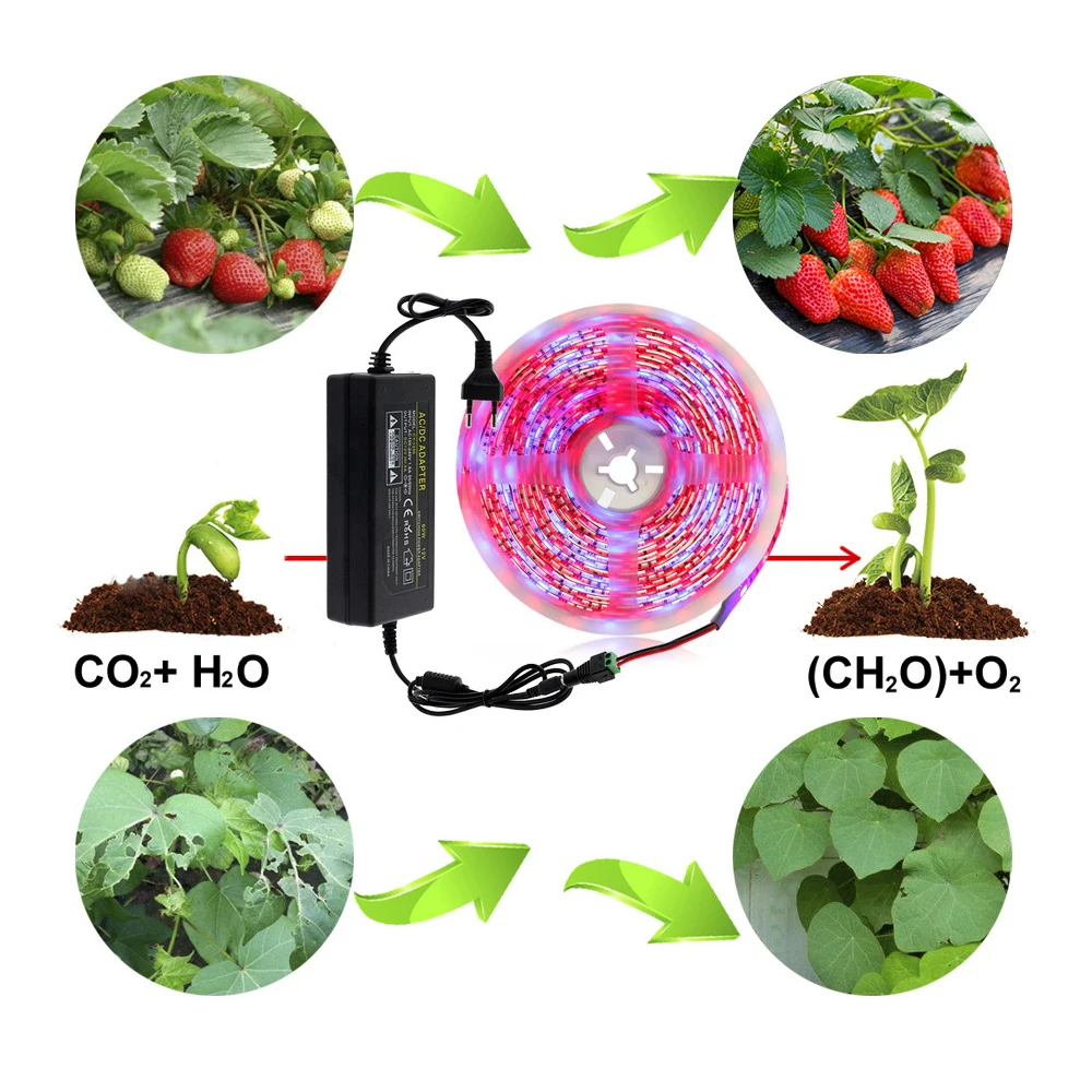 LED Grow Light DC12V Растущий Светодиодные полосы роста растений Light Set с адаптером и переключателем