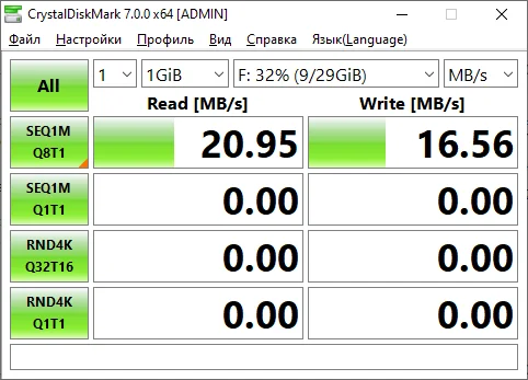 флэшка норм. 29гб по факту. скорость записи на 2.0 большого файла от 50мбит до 15мбит.