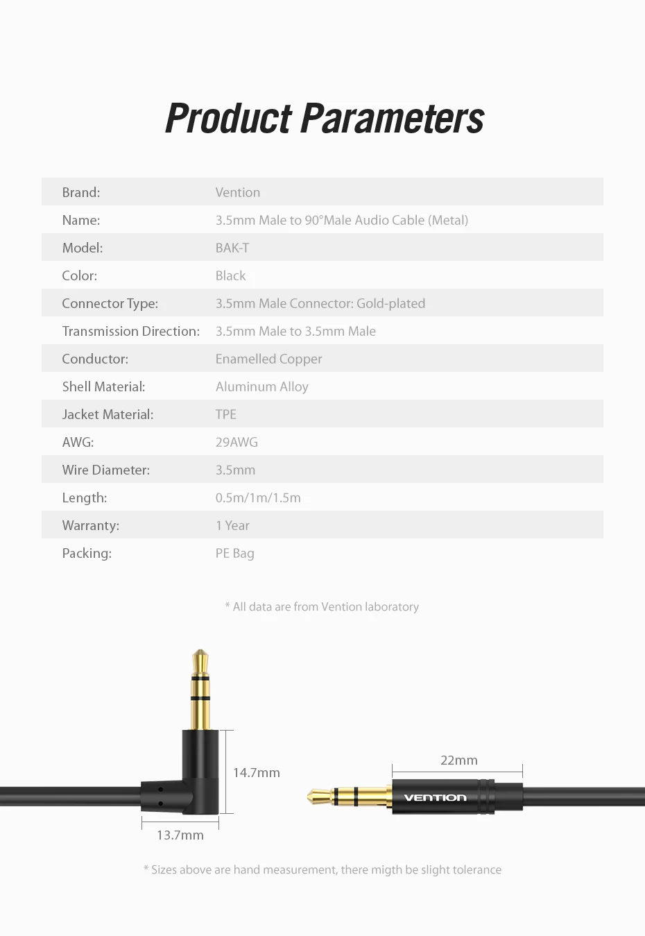 Vention аудиокабель 3,5 мм 3.5 кабель Папа-папа Аудио 90 градусов п...