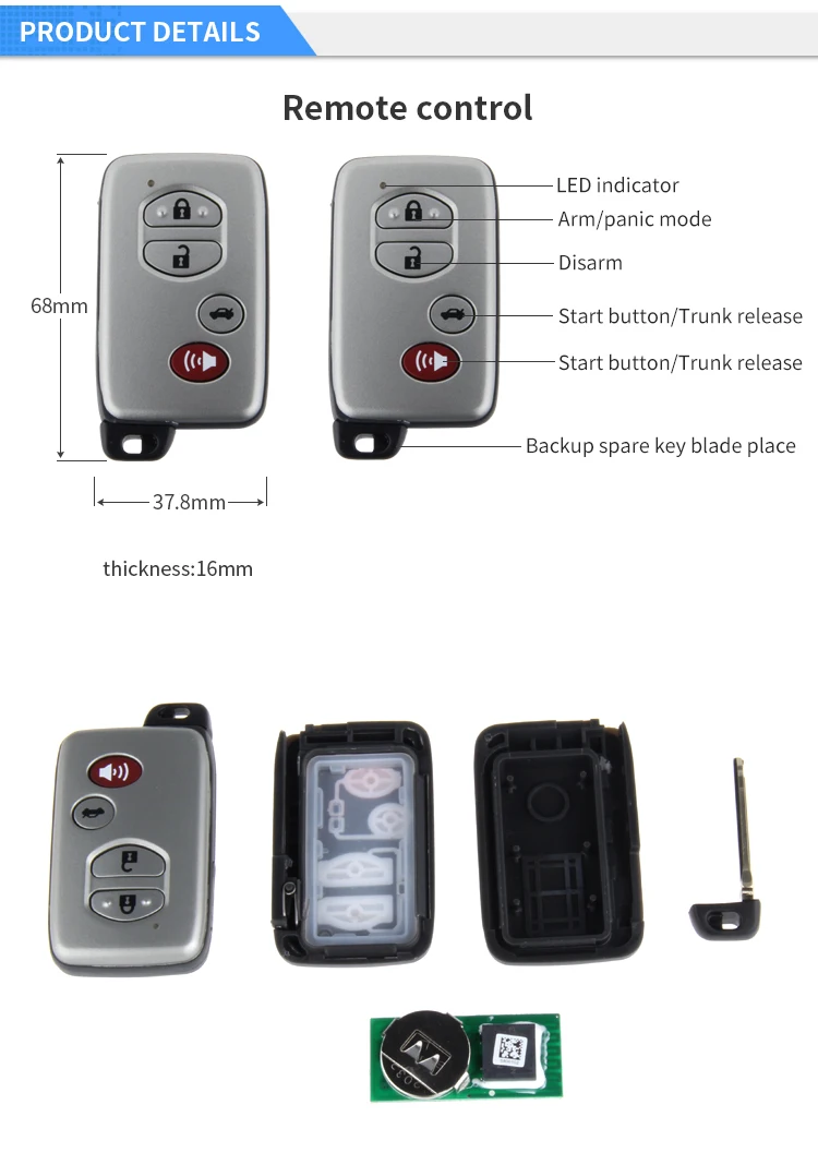 Дополнительный модуль обвода необходим для автомобилей, если в заводском OEM брелоке имеется чип-иммобилайзер, пожалуйста, обратите внимание, что этот комплект уже с модулем обвода. Универсальный модуль обхода: