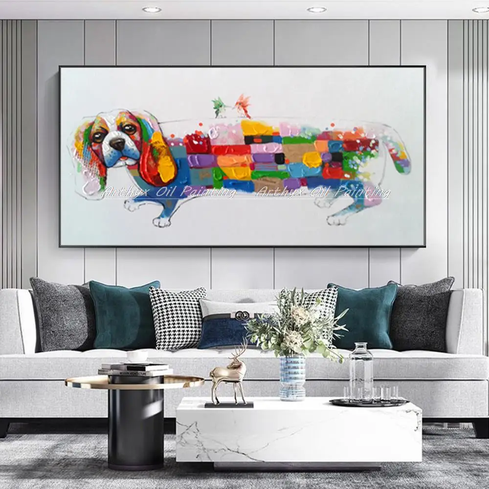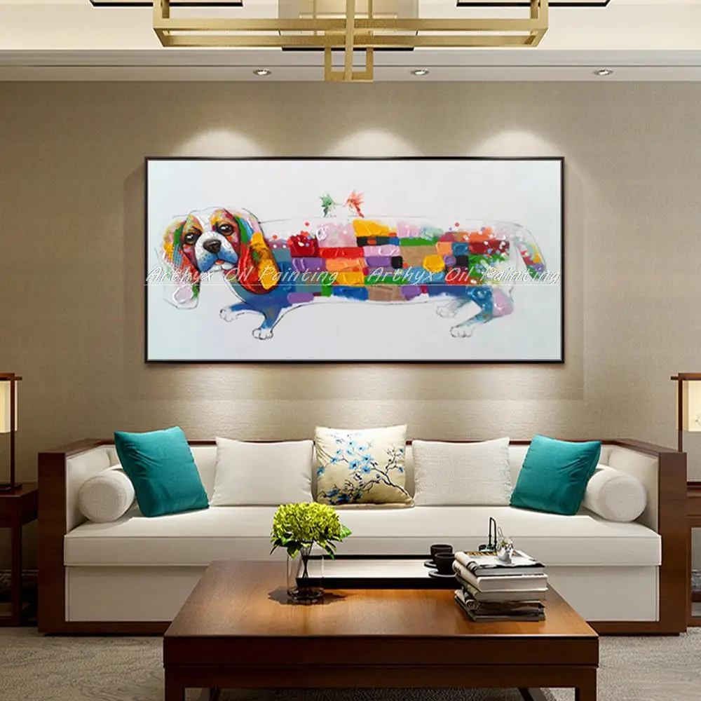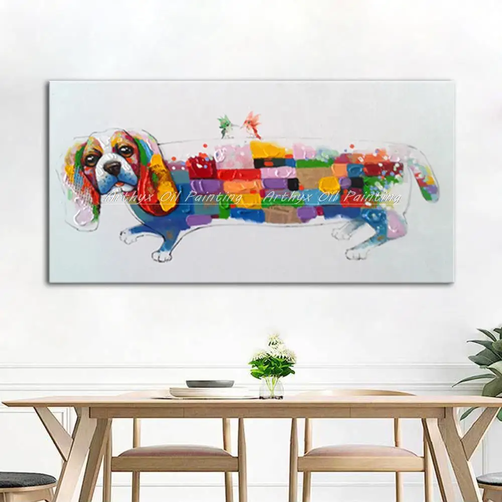 Описание товара:100%Ручная роспись маслом Раскрашенная собака саусаг картина абстрактная картина маслом на холсте для украшения дома без рамки.