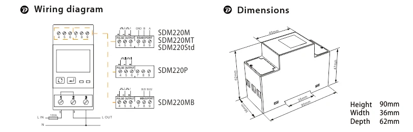 Серия SDM220 поддерживает прямое подключение макс. 100 А, экономит затраты и позволяет избежать проблем с подключением внешних CTs, что обеспечивает экономичность и простоту в эксплуатации. Встроенные интерфейсы обеспечивают импульсные выходы.