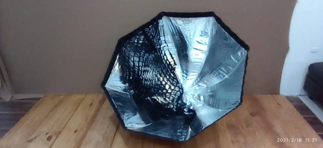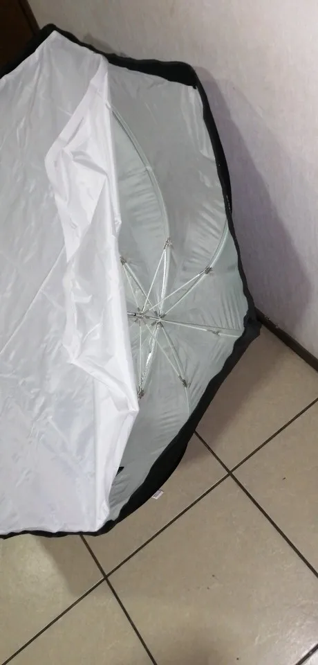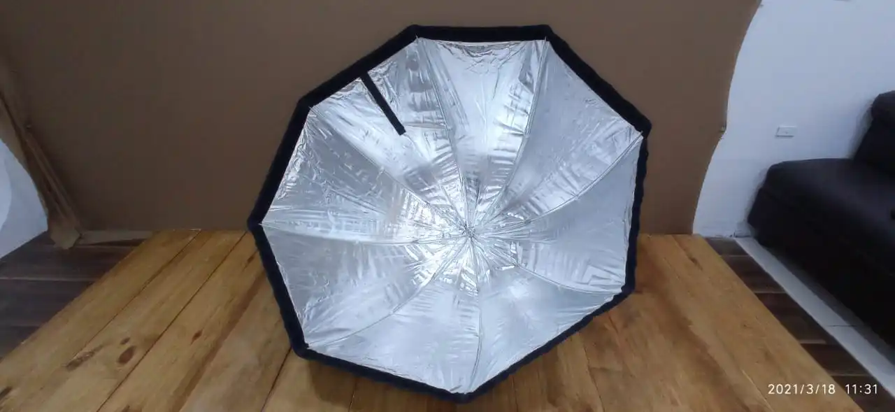 Размер отверстия составляет 120 см, внутри с отражением серебра и поставляется с передней полупрозрачной крышкой, отлично подходит для вспышки.