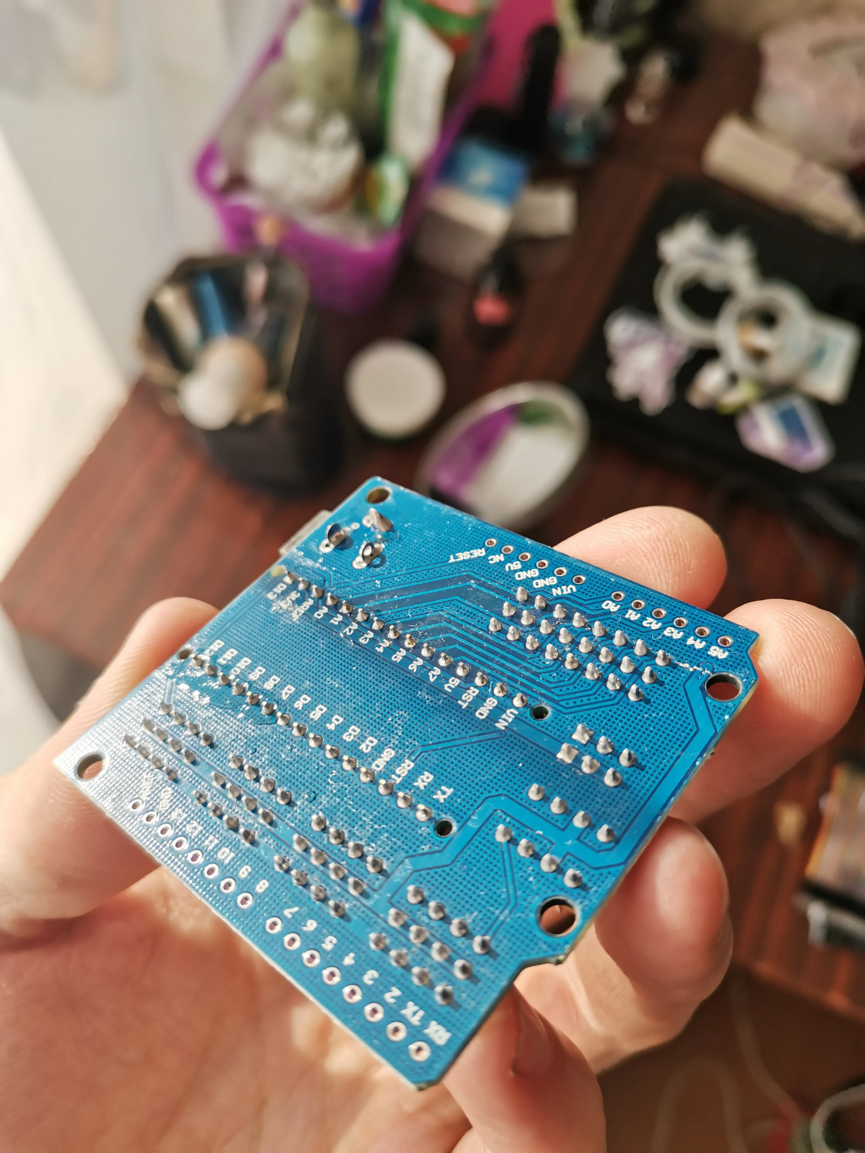 Флюс не отмыт. Пайка местами кривая. Но все работает.