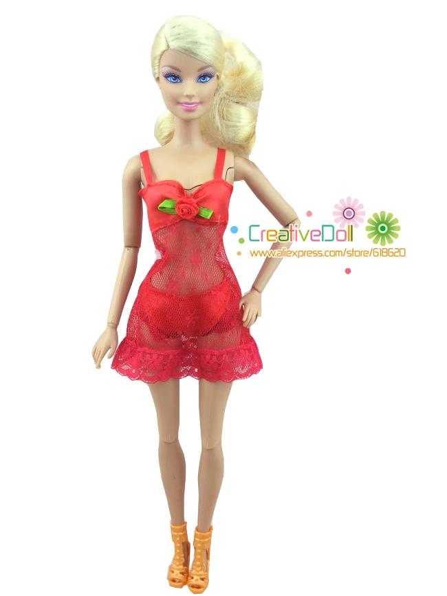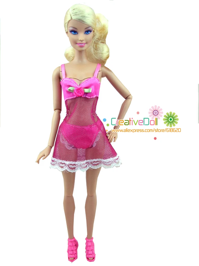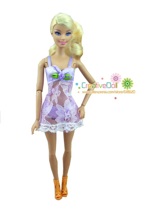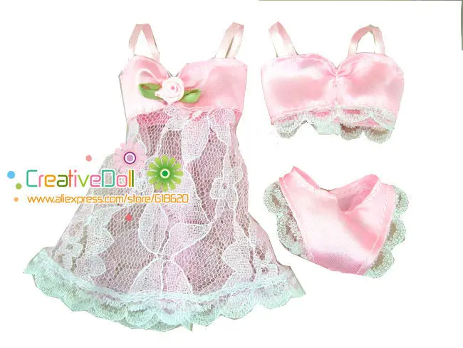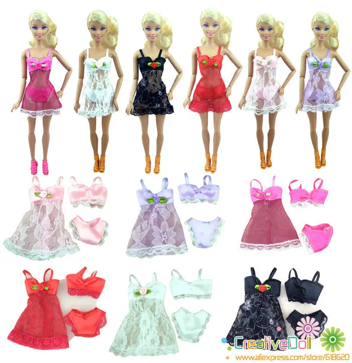 6 комплектов = 18 шт. Бесплатная доставка, сексуальное Кукольное белье, платье, костюмы, бикини для кукол Барби, платье + бюстгальтер + нижнее белье, кружевная Пижама