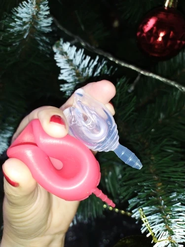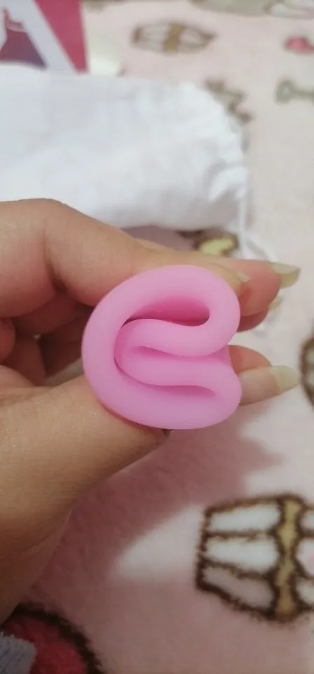 чаша толще в сравнении с другими, пока не очень поняла как она мне подходит, но лучше чем классическая форма, так каа очень хорошо присасывается, хвостик однозначно буду подрезать, мешается. Красивый цвет, запаха не было. И еще-размер L почти как S у других производителей, так что если вы сомневаетесь, что размер будет слишком большой-берите, он средний.