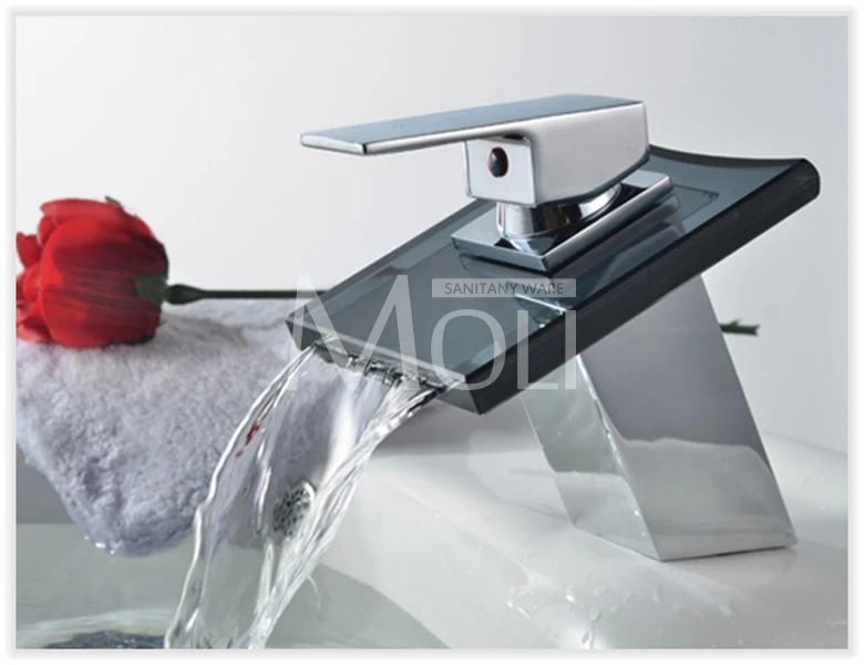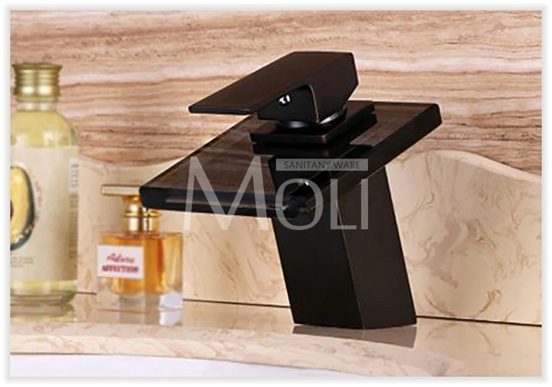 Бронзовый Смеситель для раковины, современный кран Водопад для ванной комнаты, черный Однорычажный стеклянный носик, ML8102B