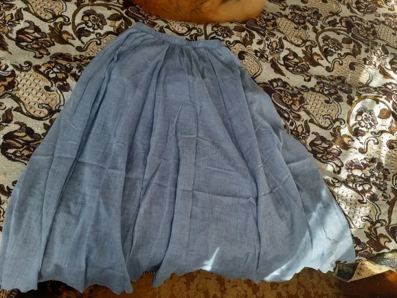 Ткань тонкая, марлевка, но есть подклад. Поскольку собираюсь ее носить как подъюбник меня устроила. Подол не ровный,придется подрезать. Хорошо, что не дорого.