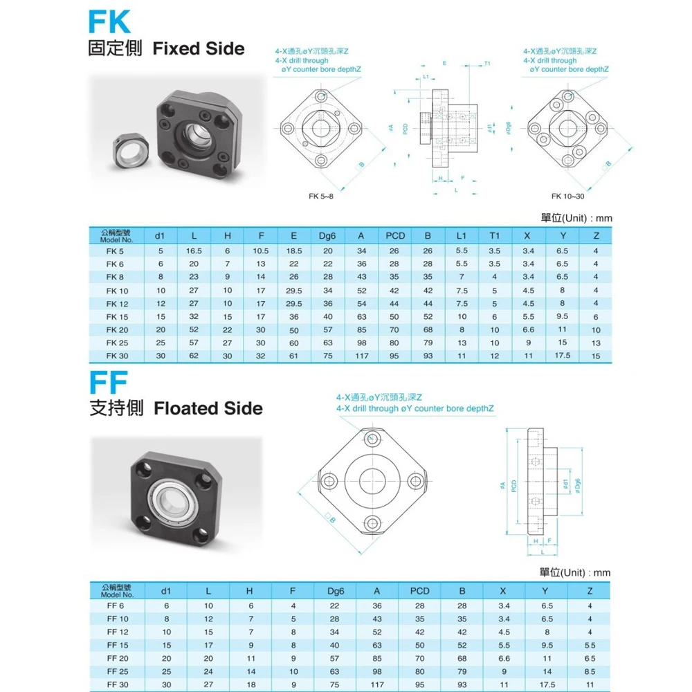 1 шт. FK15 фиксированная сторона + 1 шт. FF15 плавающая сторона для SFU2005 SFU2010 шариковый винт CNC части шариковый винт fkff15 Торцевая опора