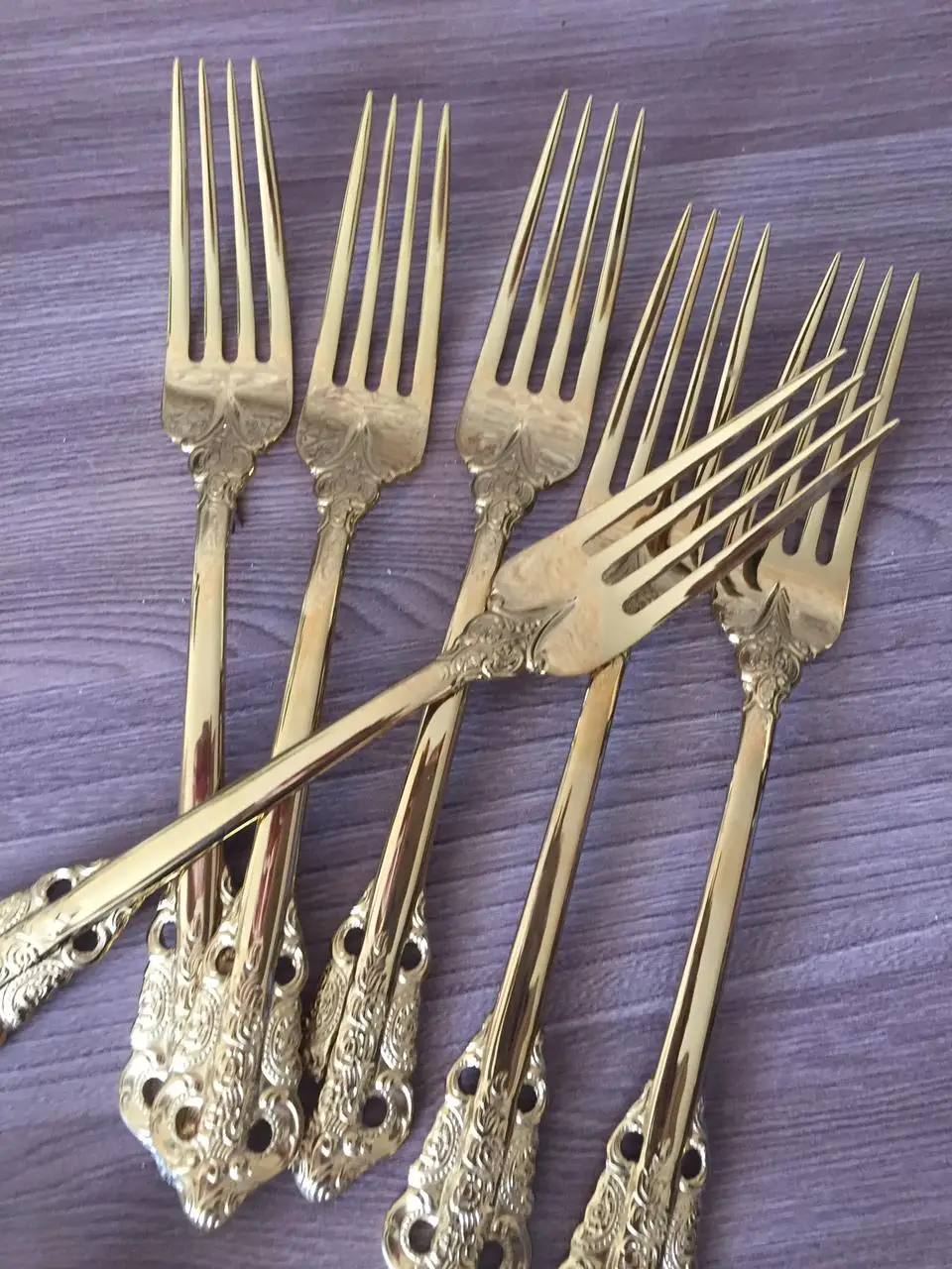 получила заказ, несмотря на то, что продавец долго отправлял, уже хотела отменить заказ, я очень довольна, все отдельно упаковано, не потерто ни поцарапано, отполировано хоть как в зеркало смотрись, такой набор только украсит стол, однозначно рекомендую цвет насыщенный, позолоченный, на фото не так видно, свет преломляется