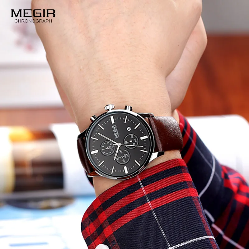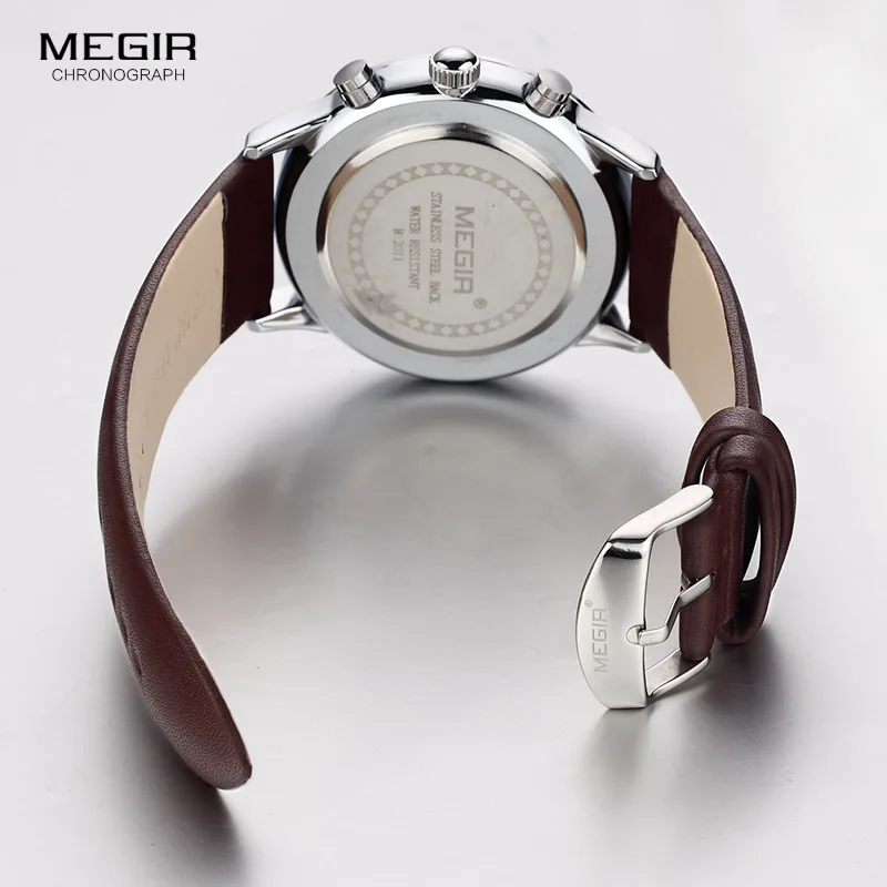 Megir кварцевые часы мужские светящиеся водонепроницаемые спортивные часы мужские коммерческие кожаные Наручные часы 2011 Бесплатная доставка