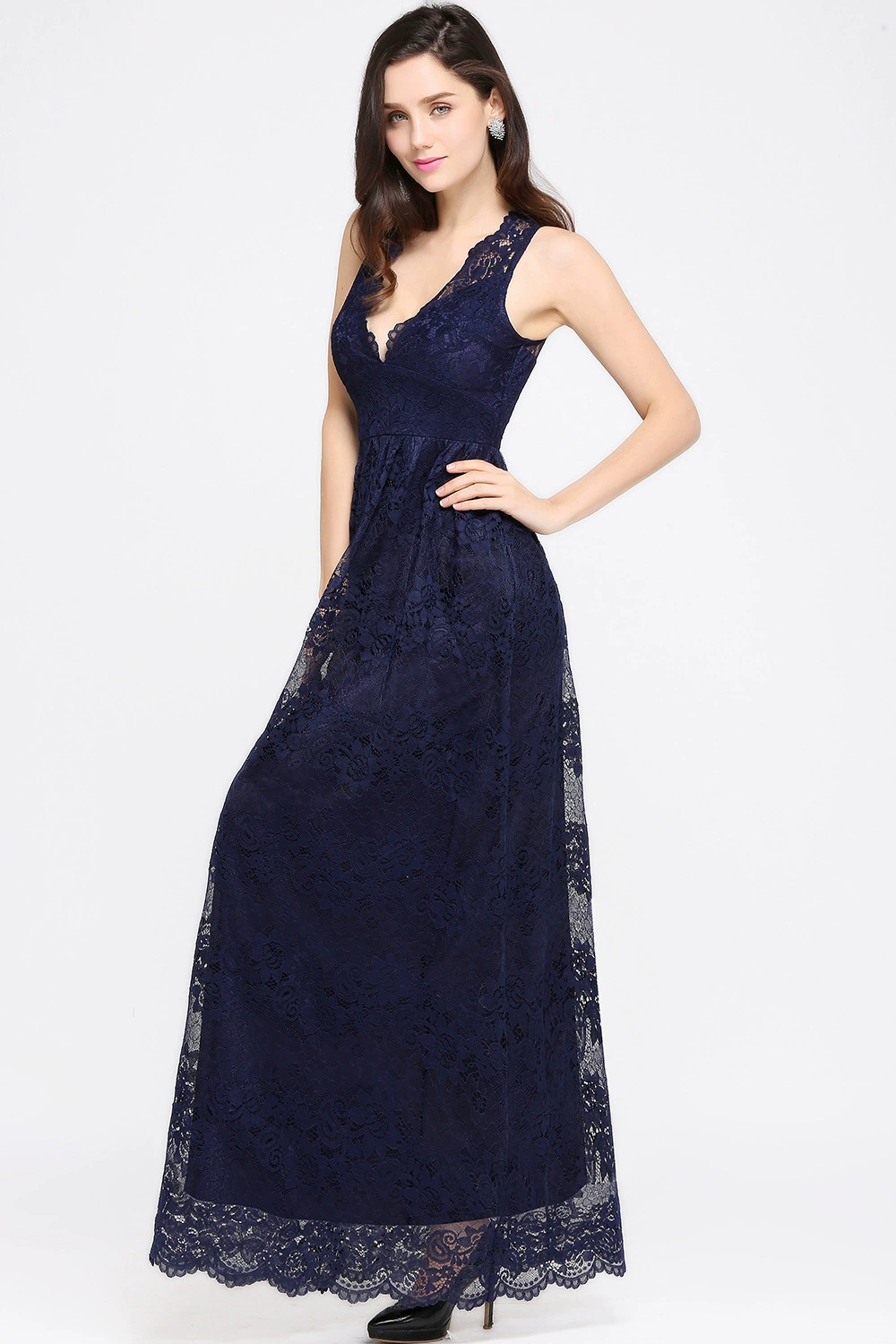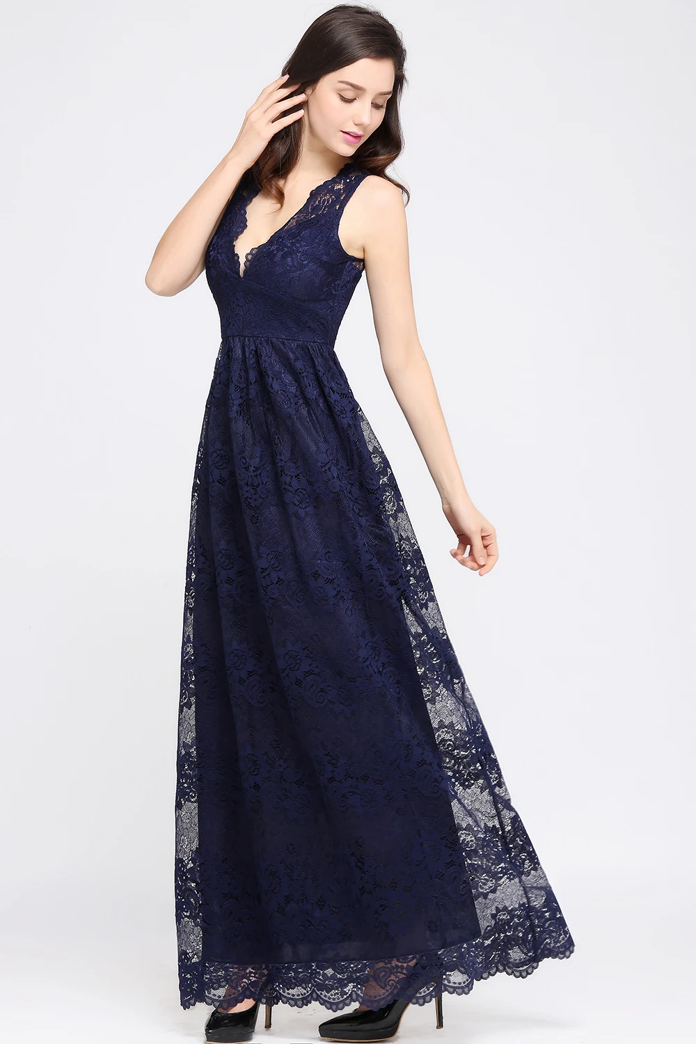 Женское длинное вечернее платье, темно-синее кружевное платье с открытой спиной, с V-образным вырезом, ТРАПЕЦИЕВИДНОЕ icon star icon star icon star icon star icon star