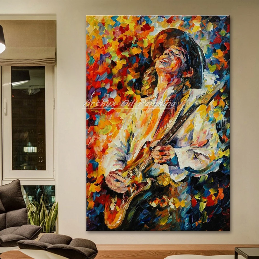 Ручная роспись Толстая текстурированная палитра нож гитарист фотография на холсте Современная Абстрактная Настенная картина домашний декор художественный подарок