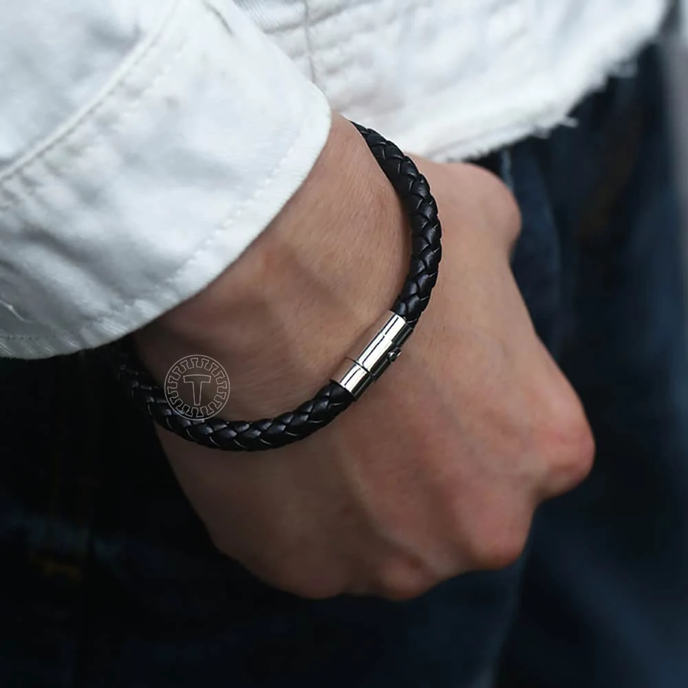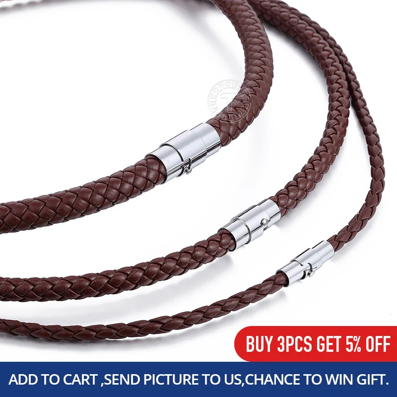 Мужское ожерелье-чокер, плетеный шнур из искусственной кожи коричневого и черного цветов, застежка из нержавеющей стали 468 мм LUNM09