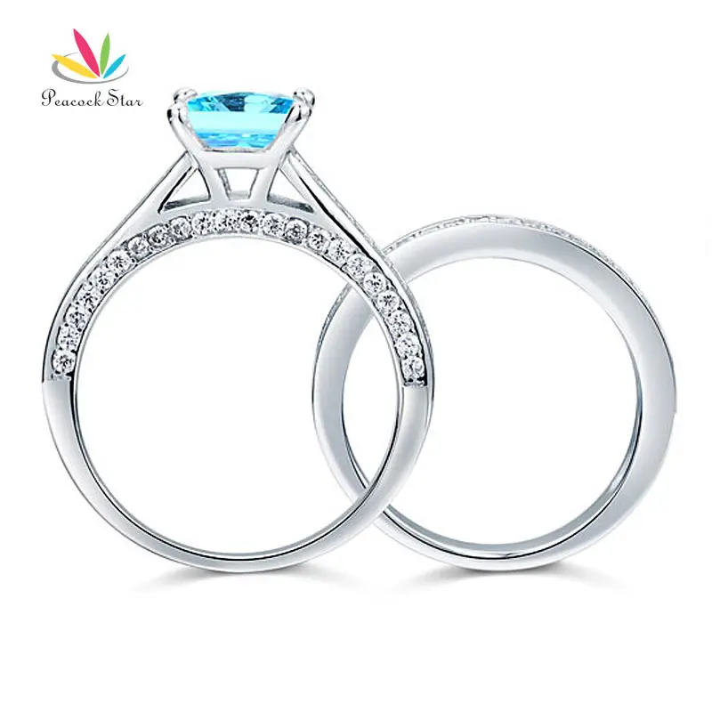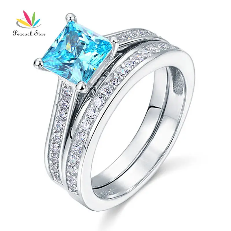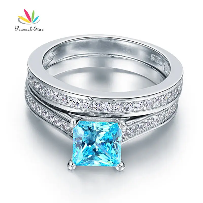 1,5 карат огранка принцессы BlueSolid серебро 925 пробы 2 шт обручальное кольцо набор ювелирных изделий