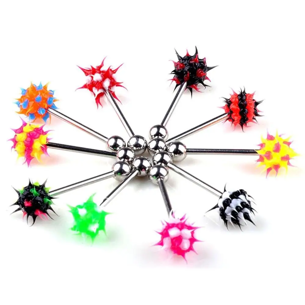 5 шт./партия, Радужный цвет, силиконовый шарик, шипы, колокольчики, кольца для живота, соска для живота, панк, мужские, женские, пирсинг, шикарные ювелирные изделия для тела