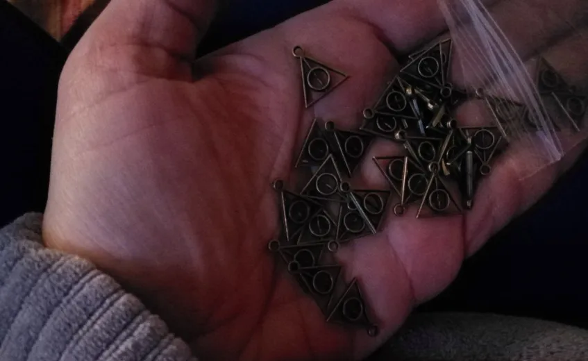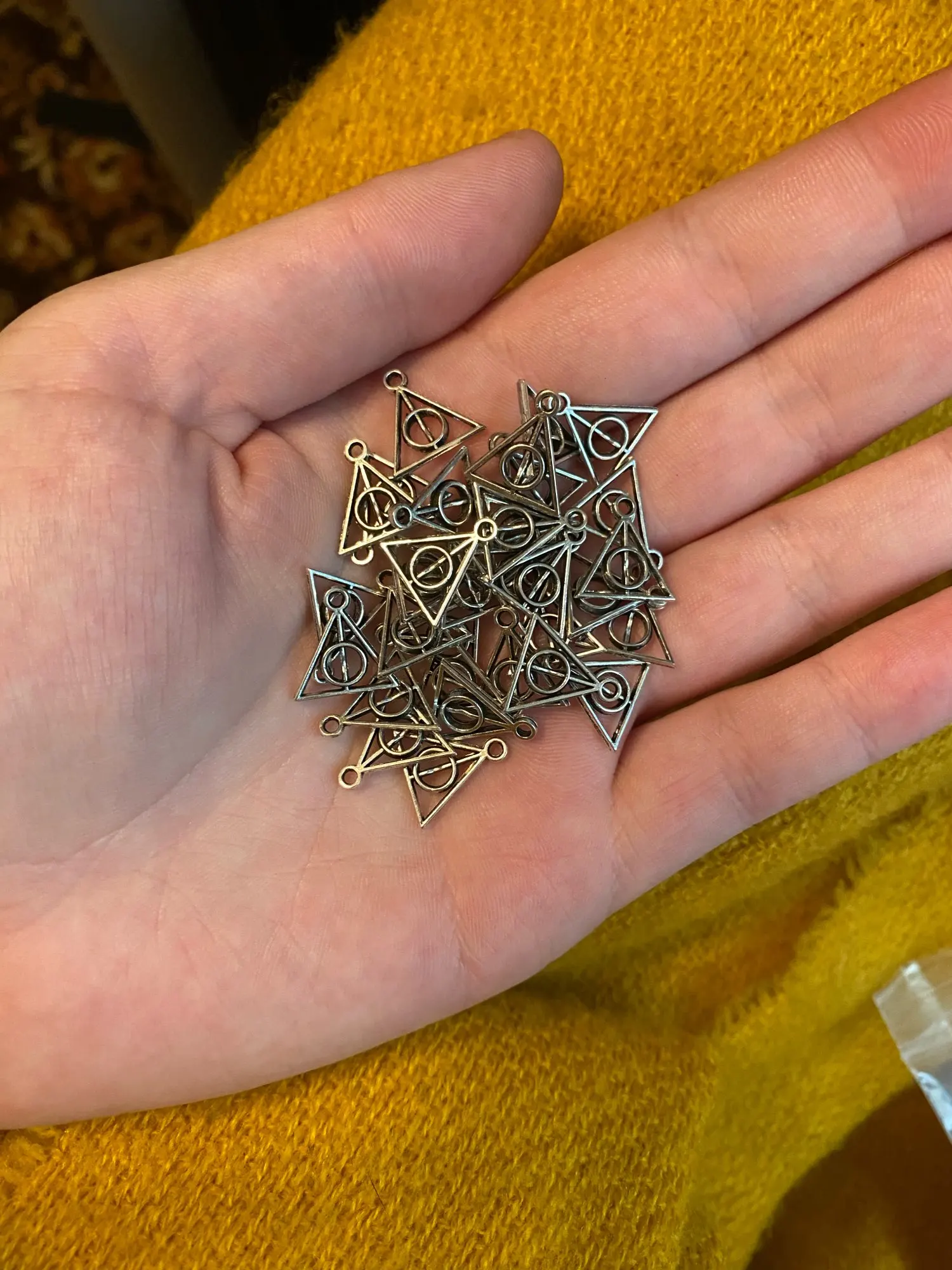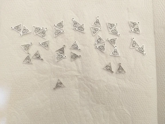 Пришло вовремя. Дары смерти гораздо темнее, чем фотографии и другие товары продавца. Они более тусклые тибетские серебряные, чем описано античное серебряное покрытие