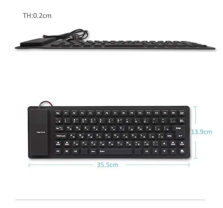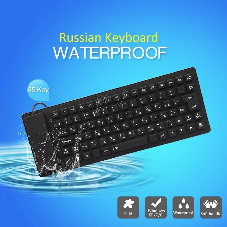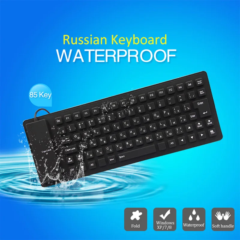 USB-клавиатура Teclado Складная Водонепроницаемая с русскими буквами, 85 клавиш